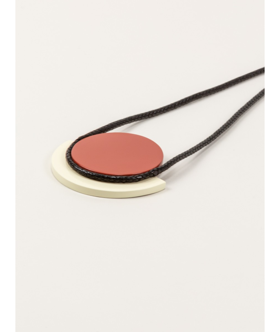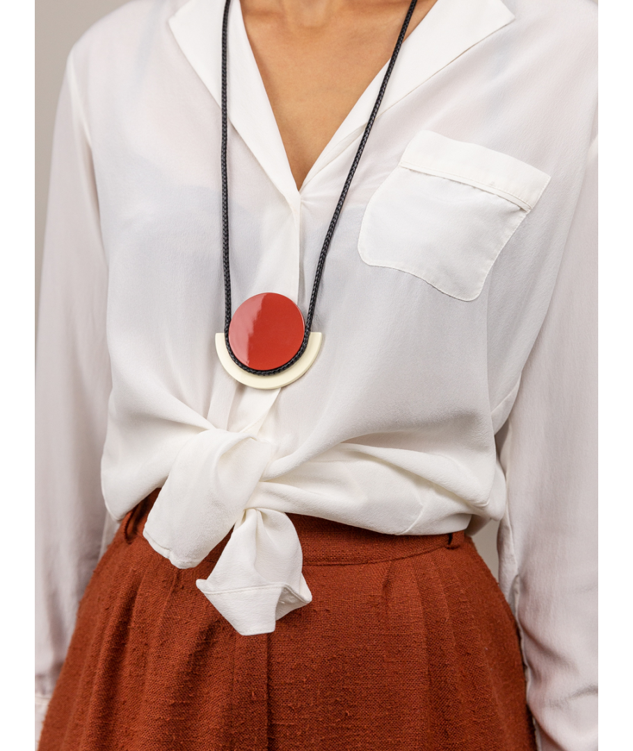 Pendentif Astre en corne africaine avec laque brique et ivoire