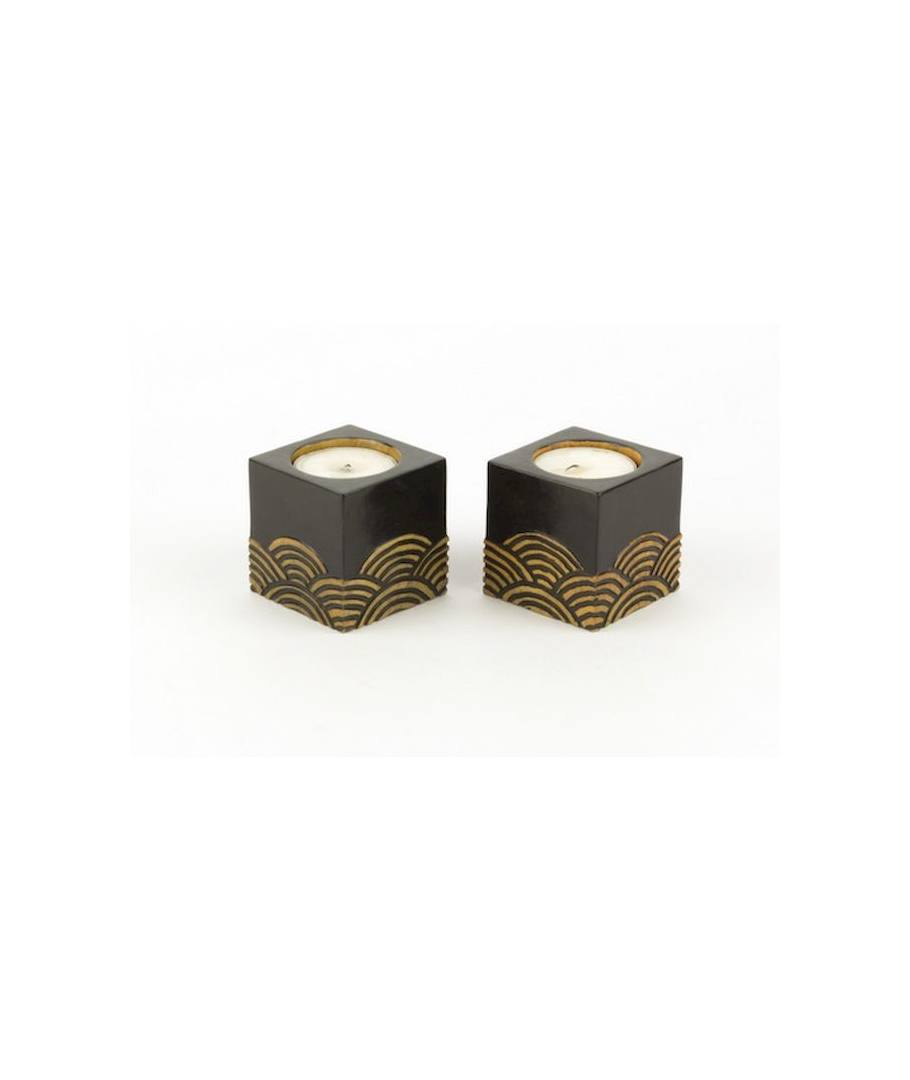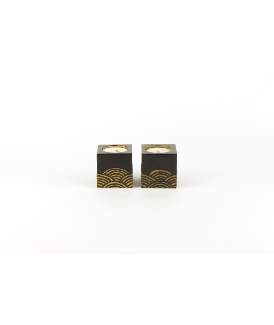 Set de 2 petits bougeoirs cube vagues en pierre fond noir