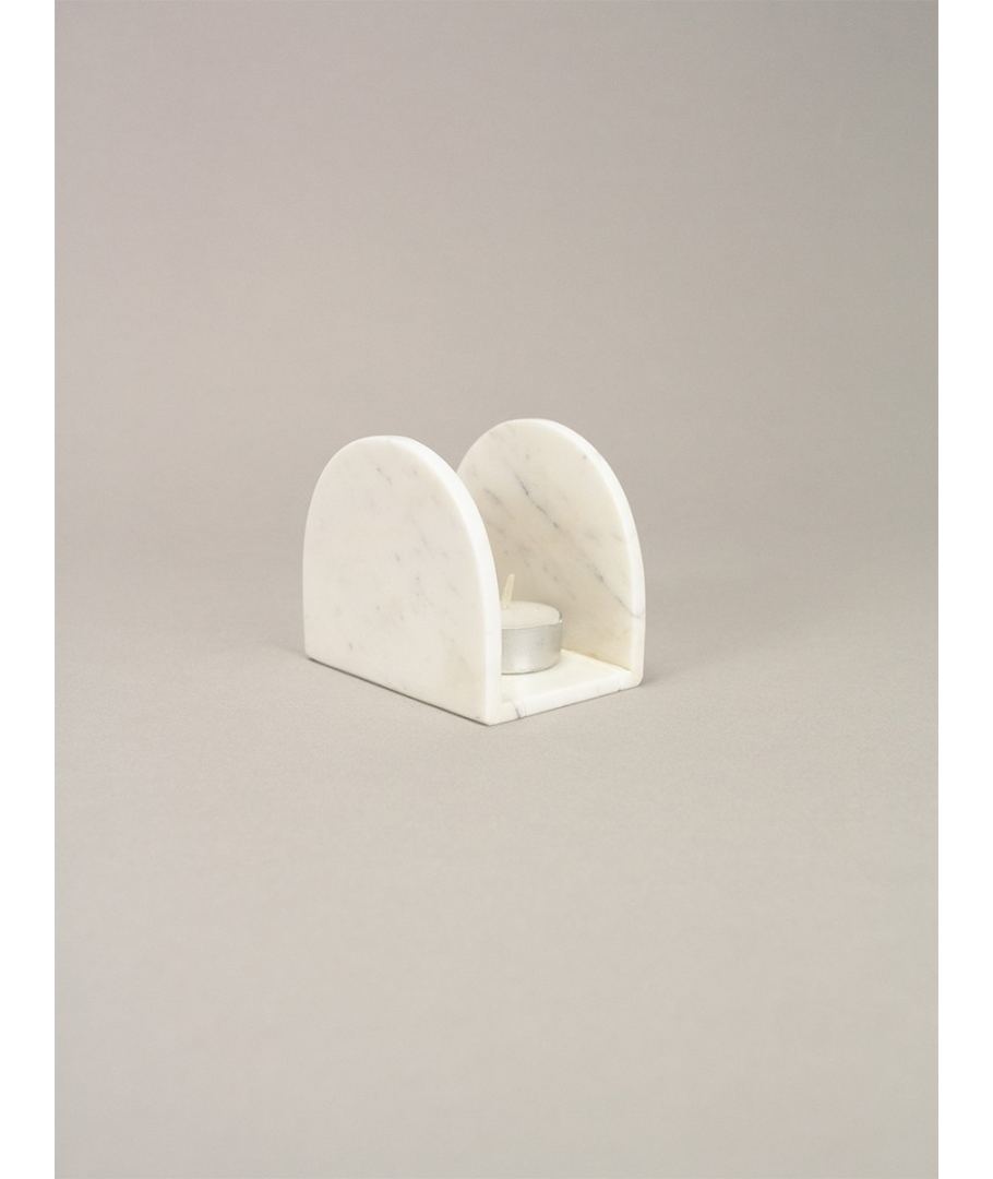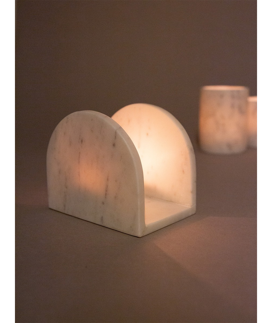 Photophore oval en marbre blanc