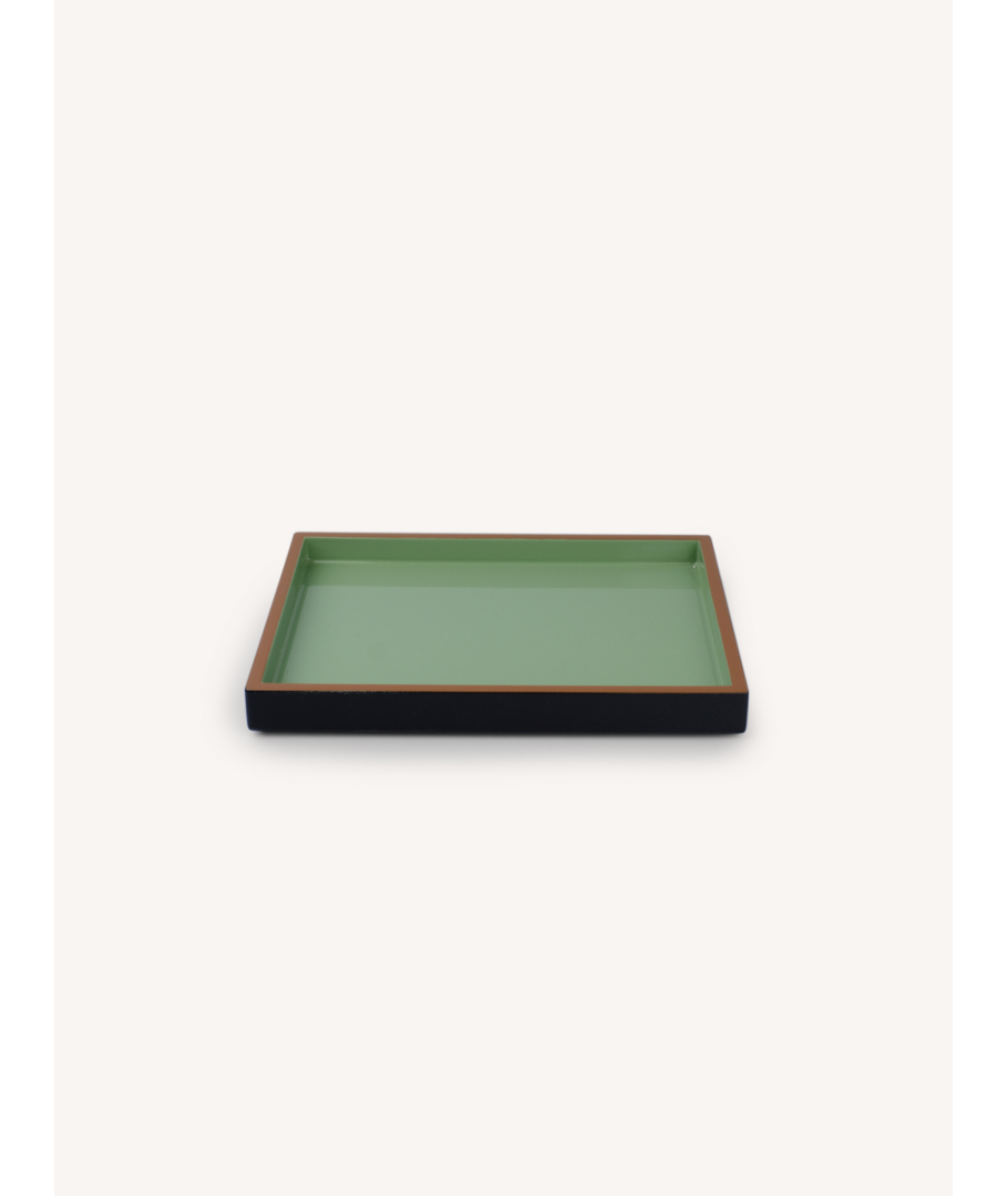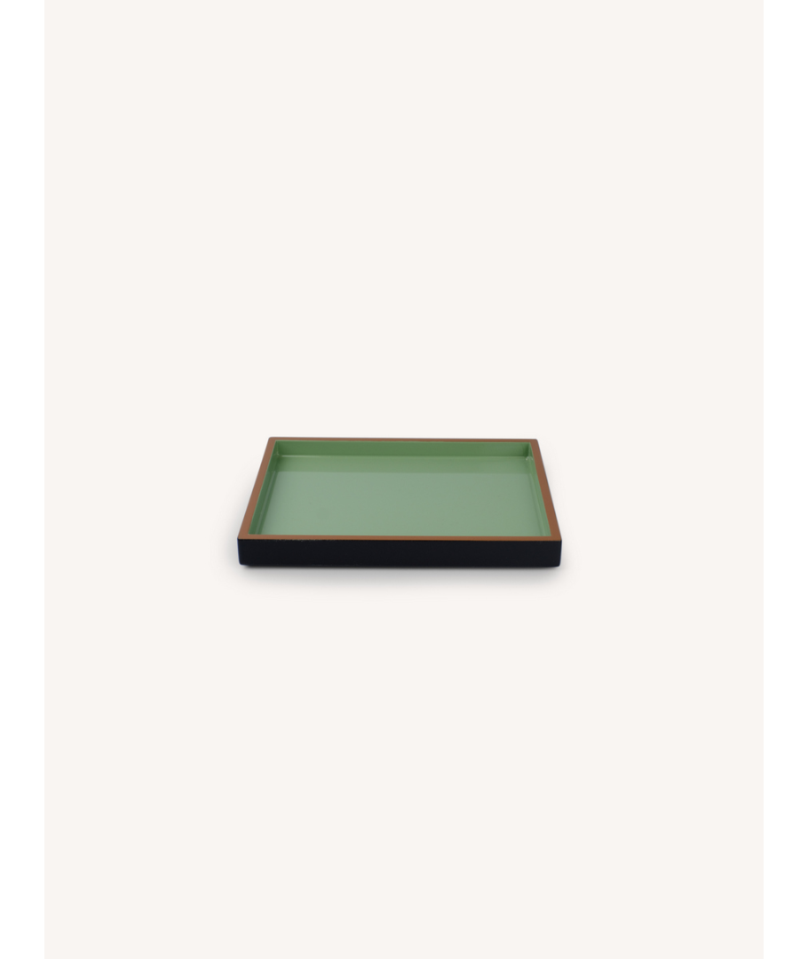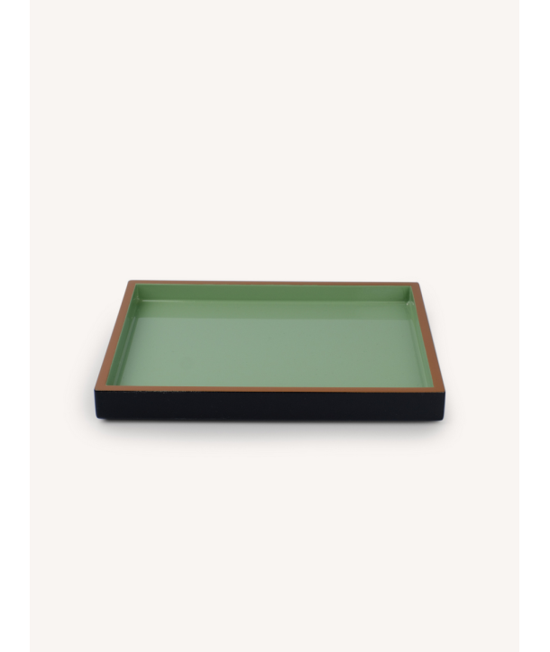 Set de 3 plateaux rectangulaire laqués jade, noir et tabac