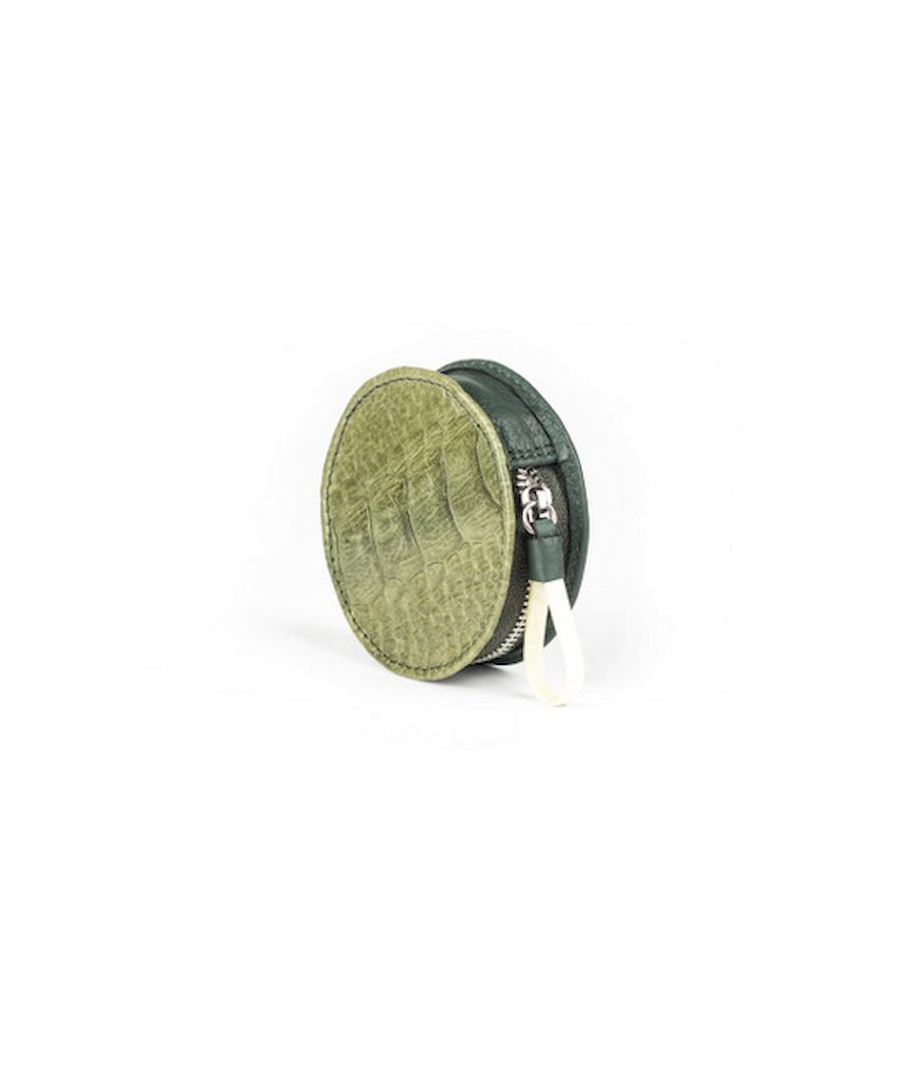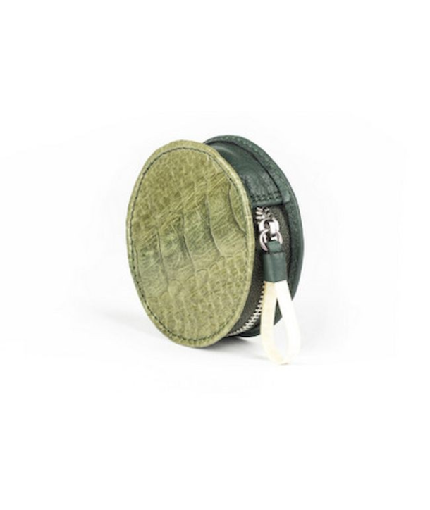 Petit porte-monnaie cuir autruche et vache en cuir vert