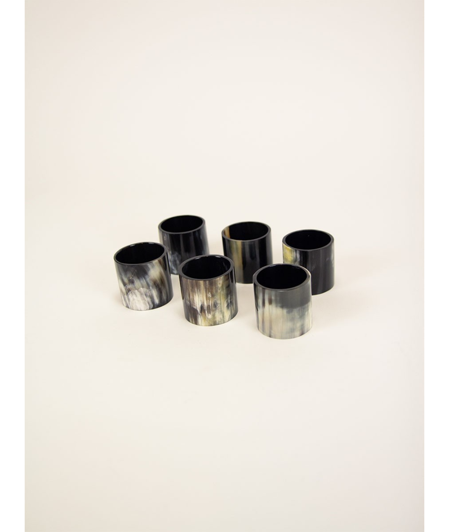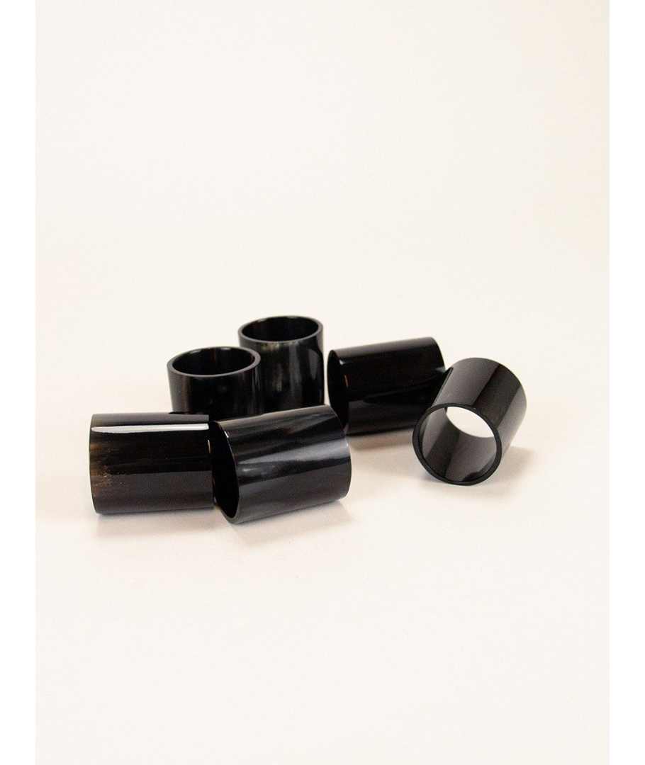 Set de 6 ronds de serviette en corne noire