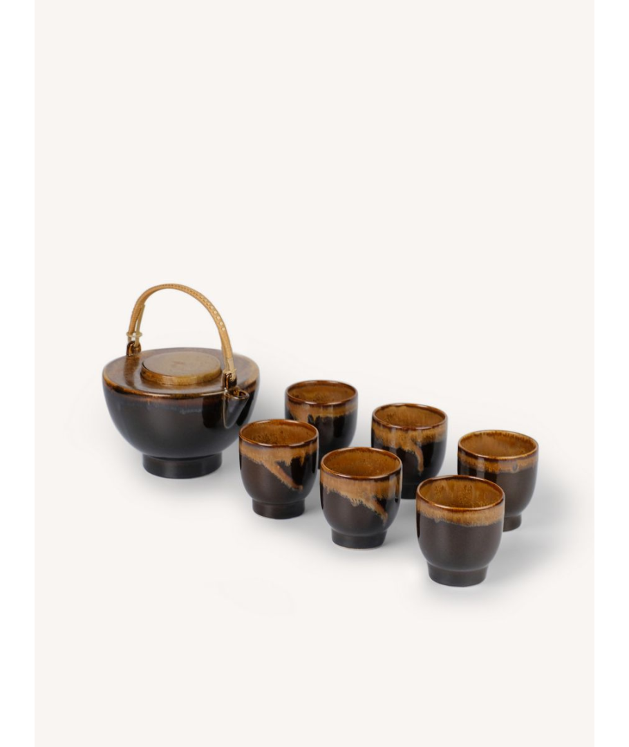 Théière, anse laiton noir, émail terre flamée Ket Tinh