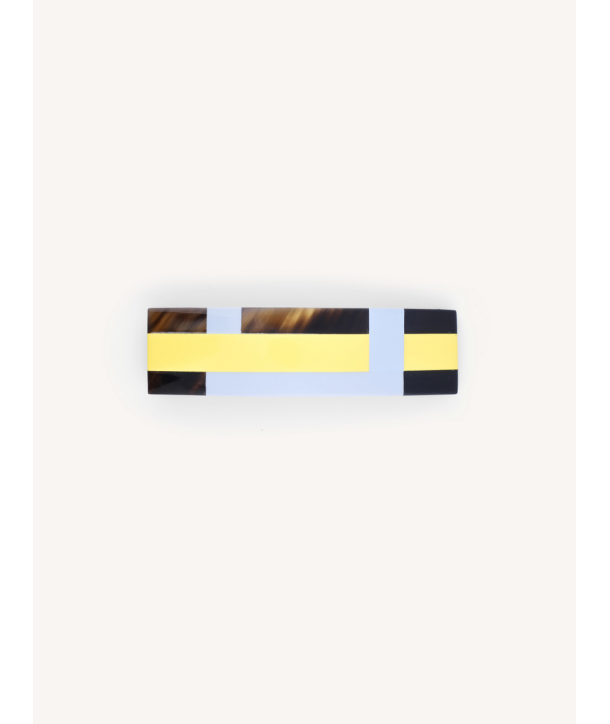 Barrette rectangulaire sabot de buffle et laque jaune bleu
