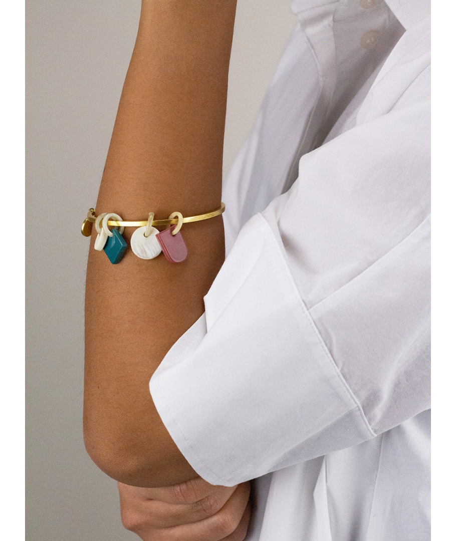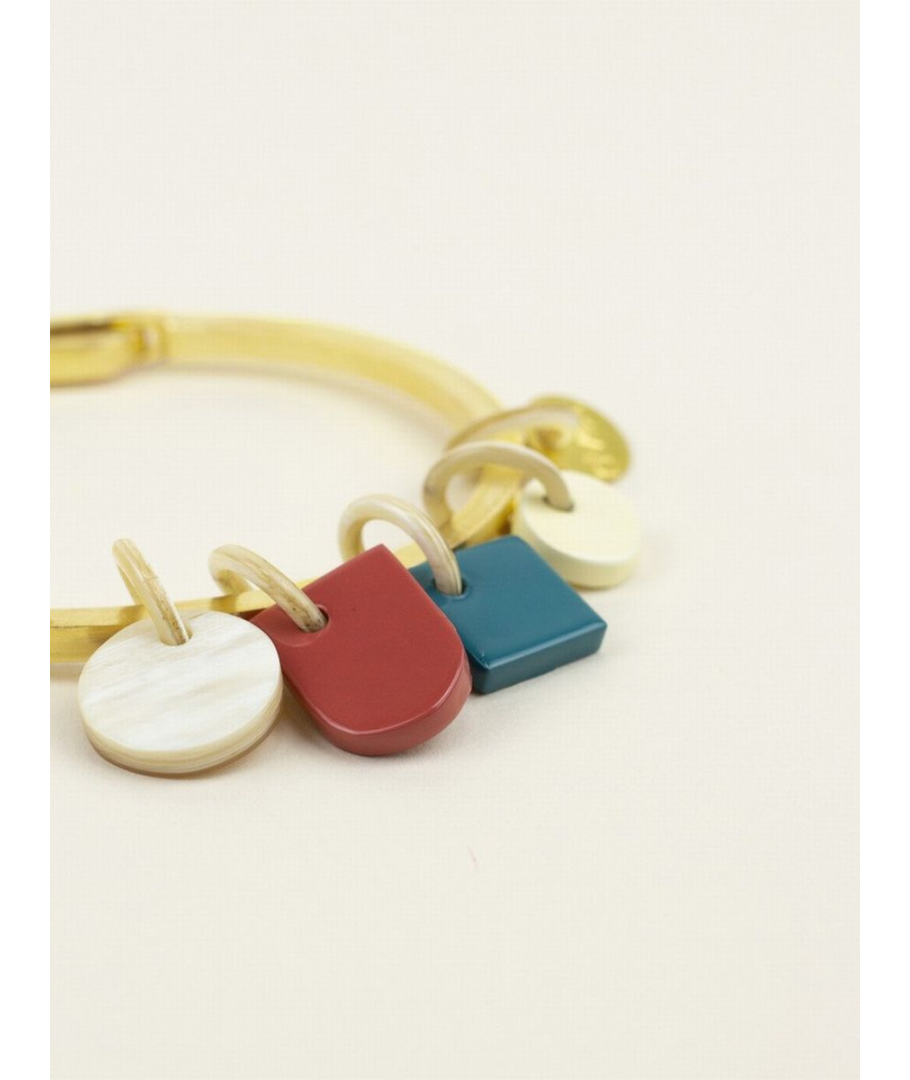Natural brass bracelet with horn and lacquer charms
