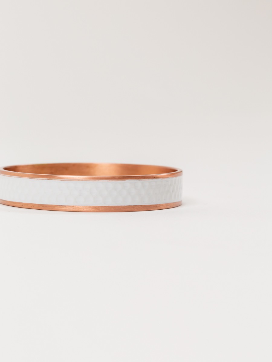 Hammered copper thin bangle with white lacquer in size S