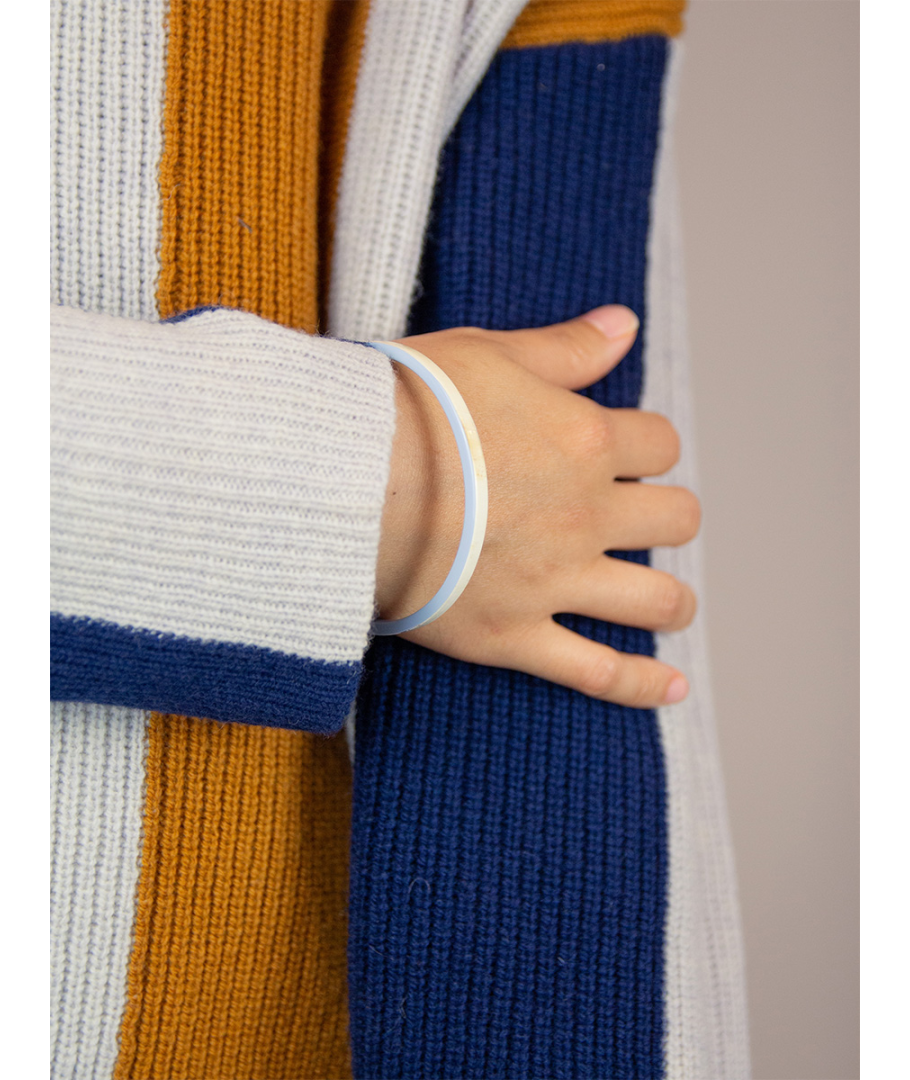 Bracelet Bandeau fin en corne blonde et laque bleu taille L