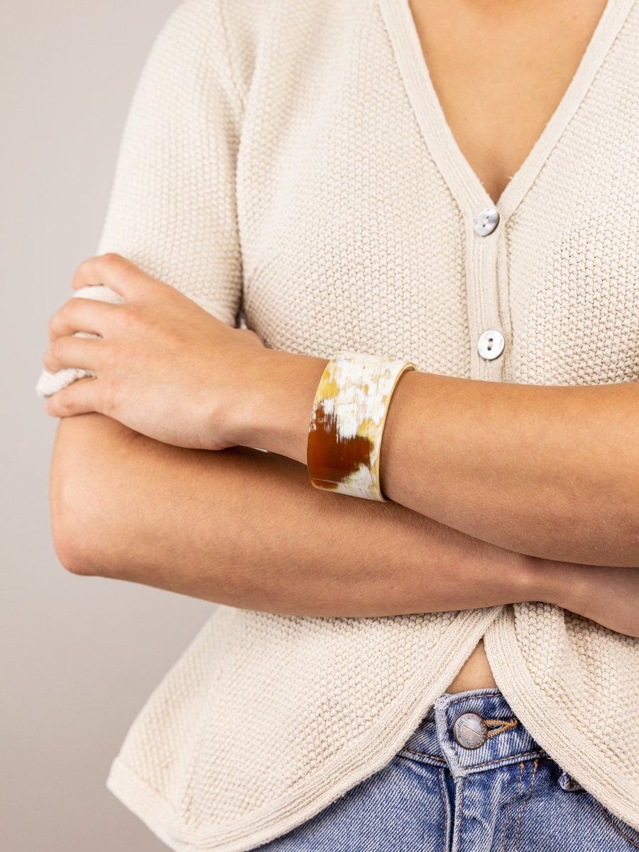 We offer 2 sizes according to the inside diameter of our bracelets and cuffs. Please pay attention to the width of the bracelet or cuffs when you choose the size. You may need a bigger size to be able to put on a wide bracelet or cuffs, than you would with a thin one.