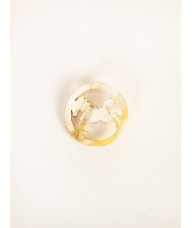 Broche cheval en corne blonde