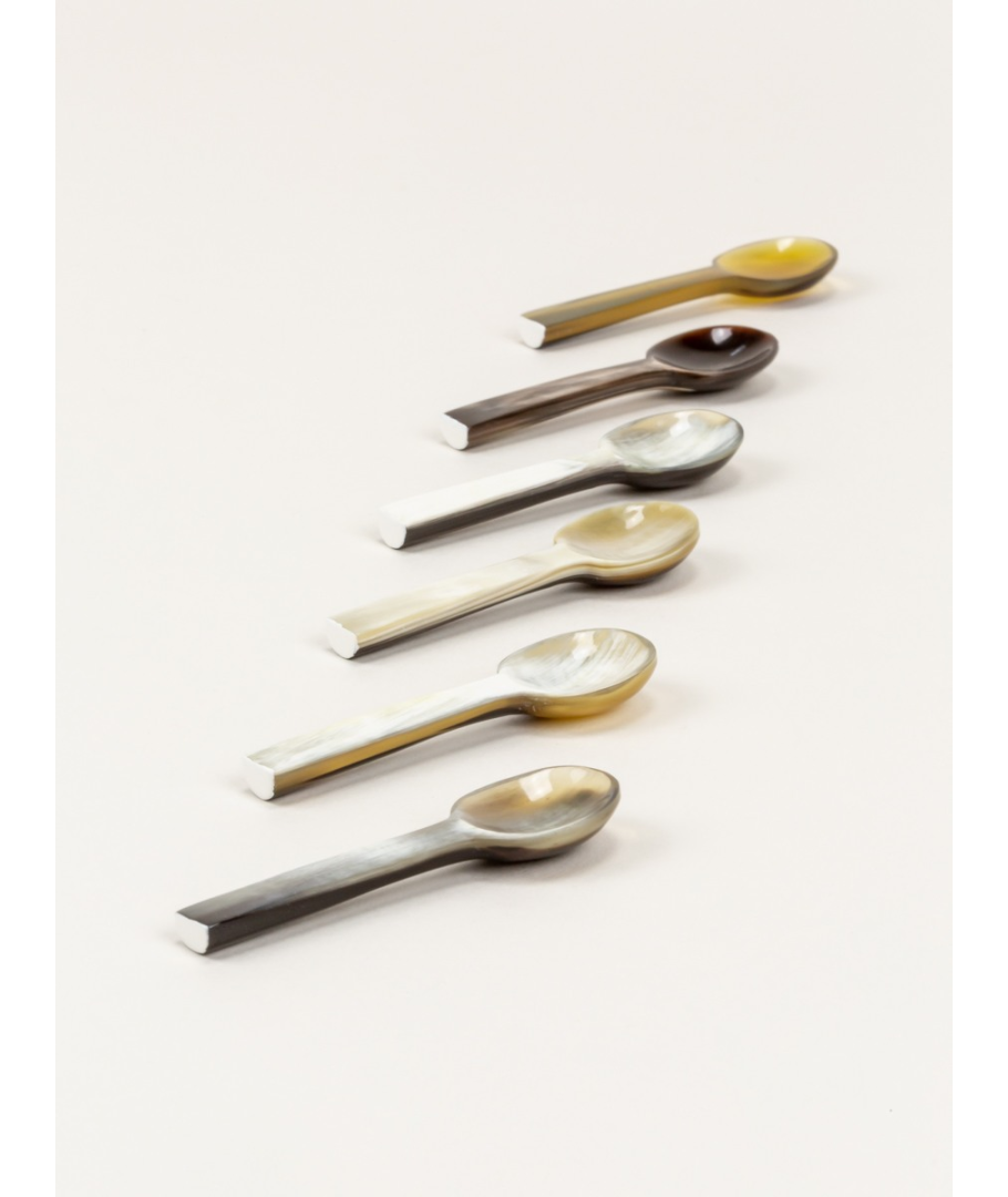Set de 6 cuillères à sel Baguette en corne noire africaine (par 6)