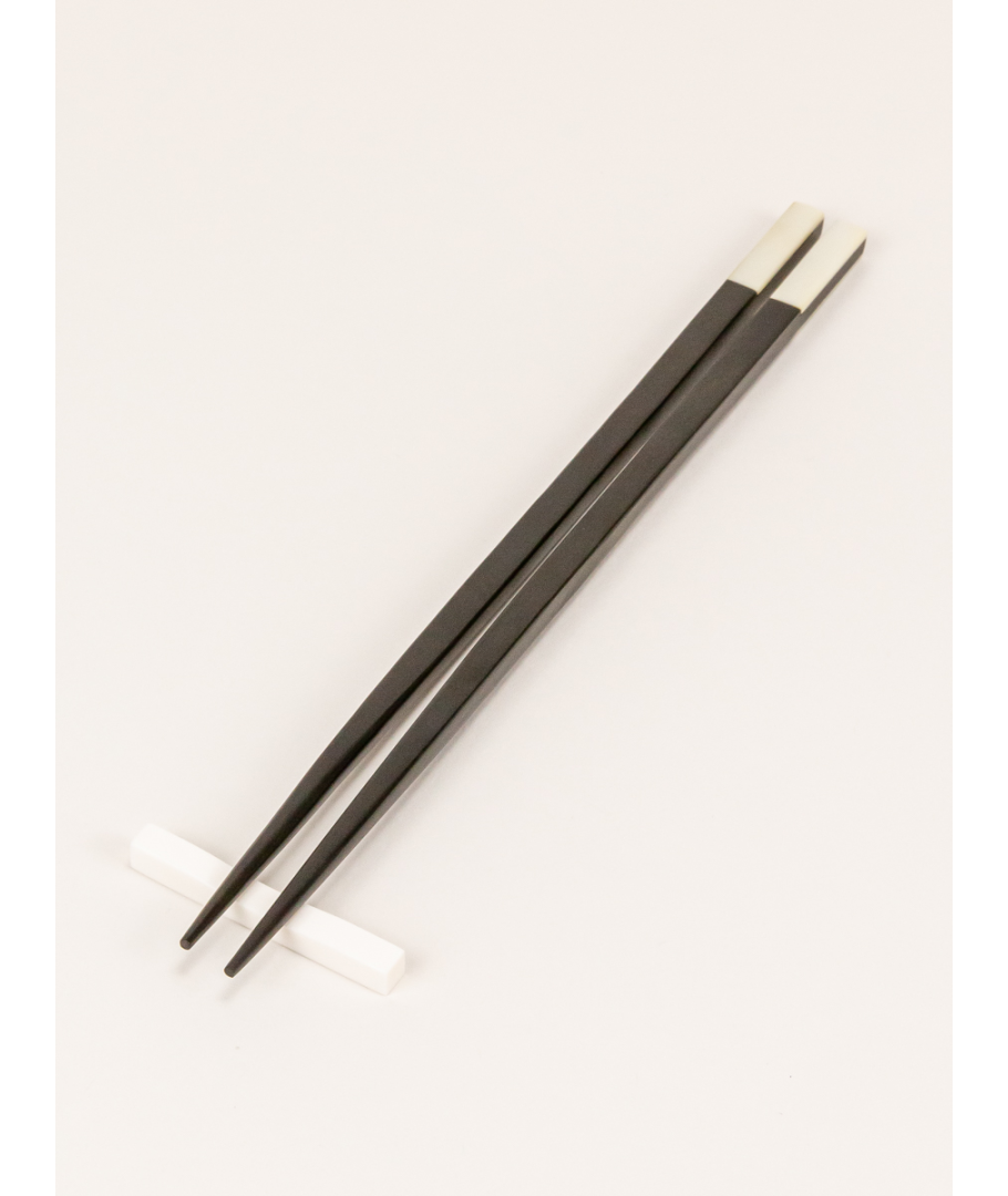 Set de 6 paires de baguettes en ébène et corne blanche