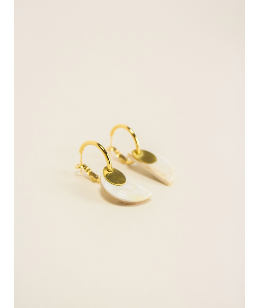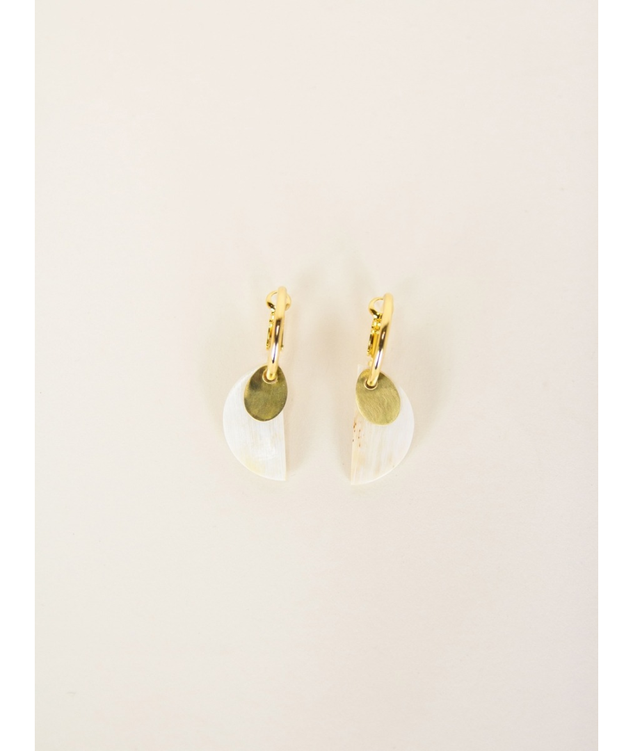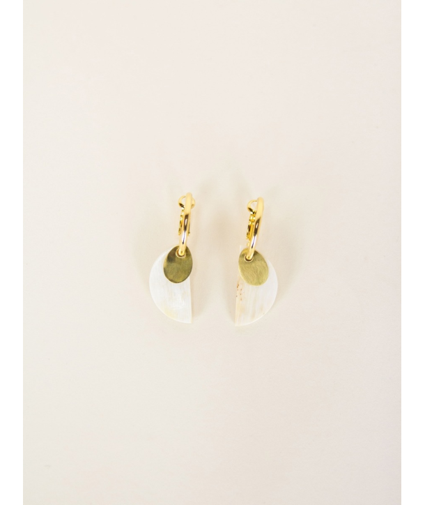 Boucles d'oreilles créoles 2 parties laiton et corne blonde africaine