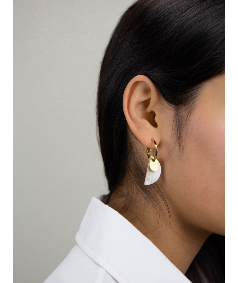 Round brass hoop earrings in blond horn