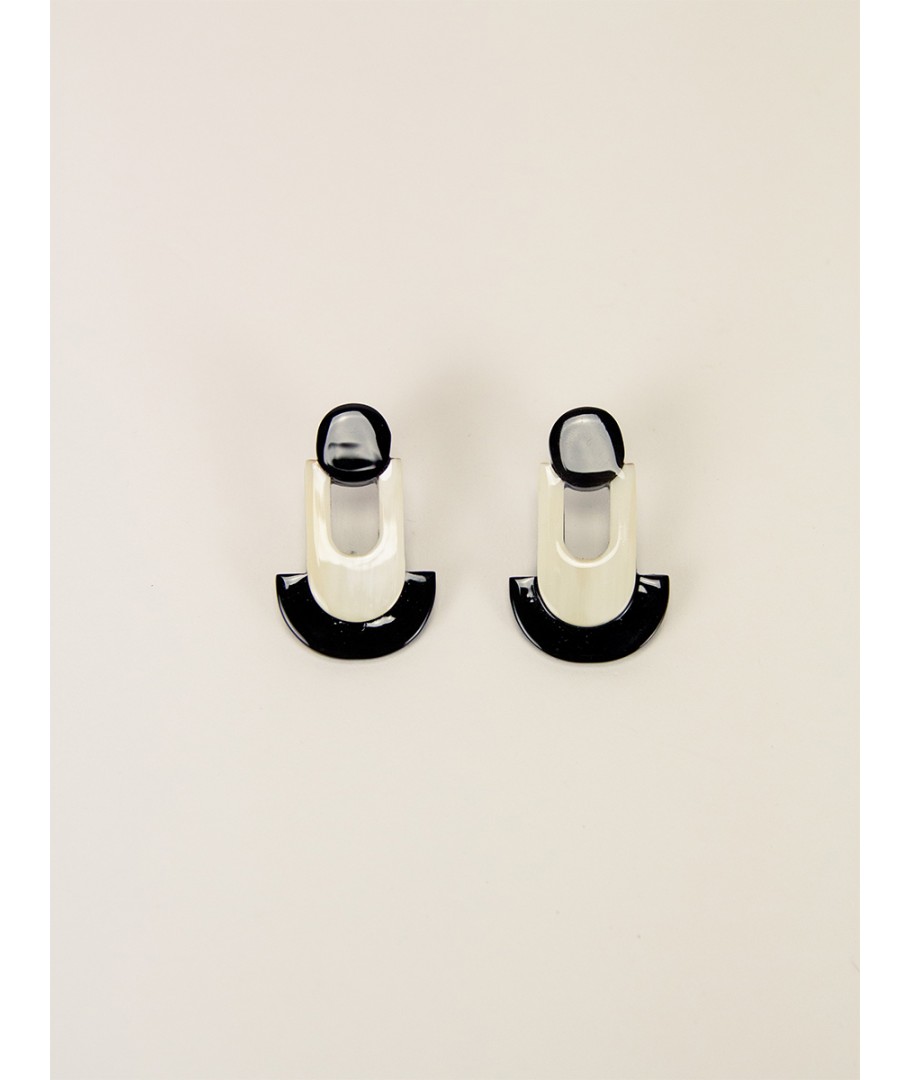 Boucles d'oreilles géométriques en corne blonde et noire