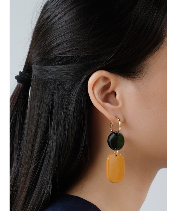 Mini Créoles suspendues Nymphe en corne blonde et laque Orange