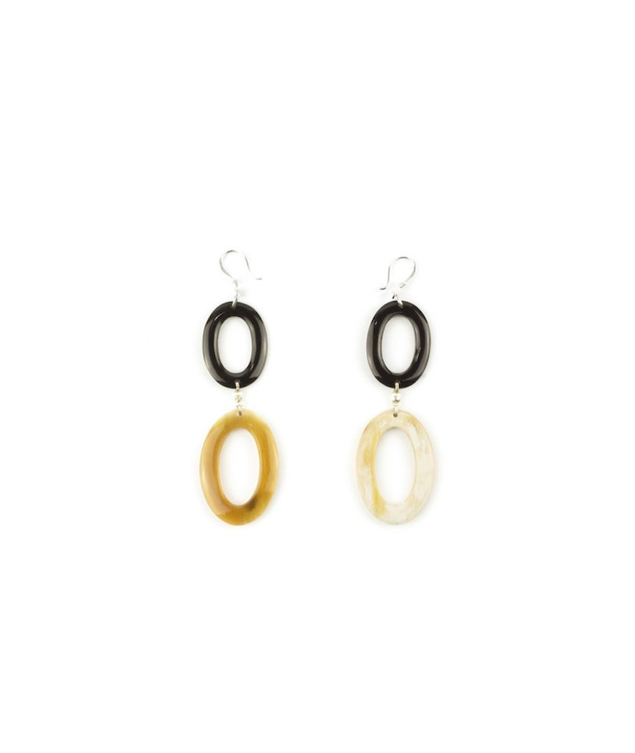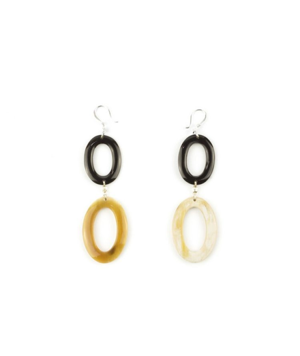 Boucles d'oreilles double ovales fins en corne blonde et noire