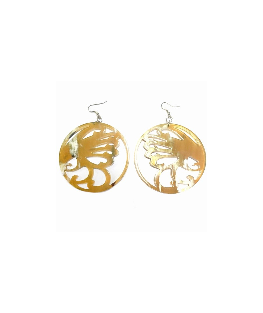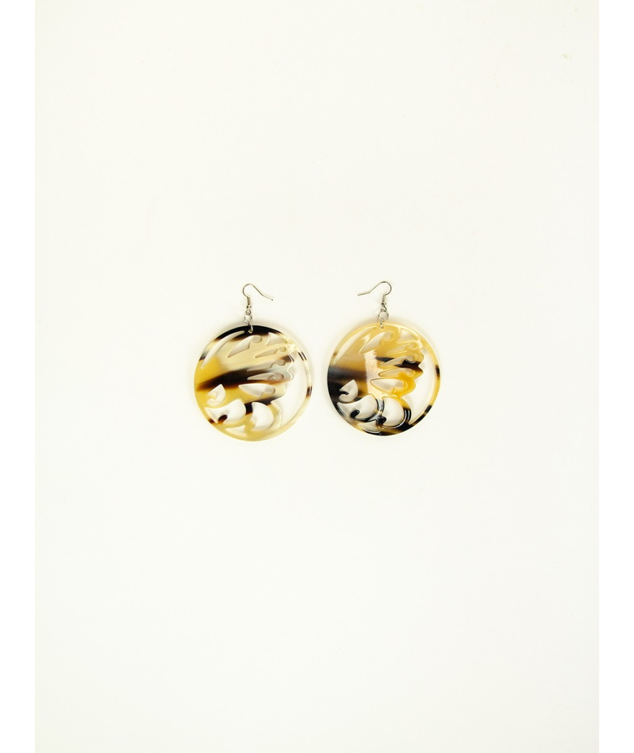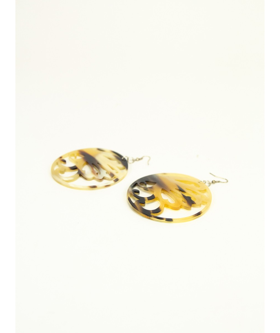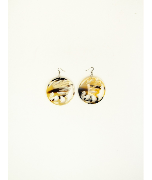 Boucle d'oreille ronde dentelle en corne blonde africaine