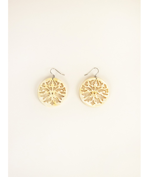 Earrings with laces of Calais design in white horn