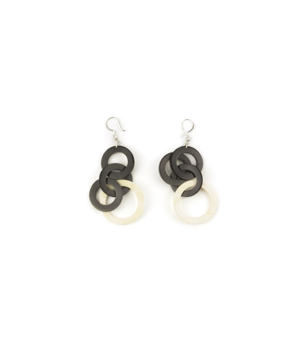 Boucles d'oreilles anneaux multiples en corne noire et blonde