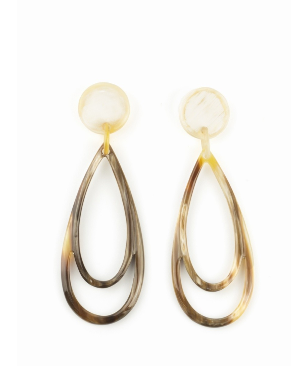 Boucles d'oreilles clips double larme en corne blonde