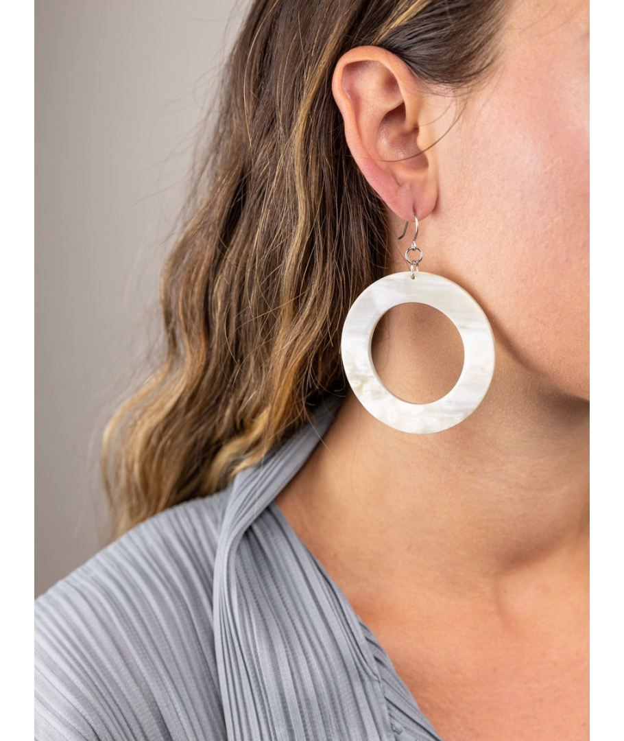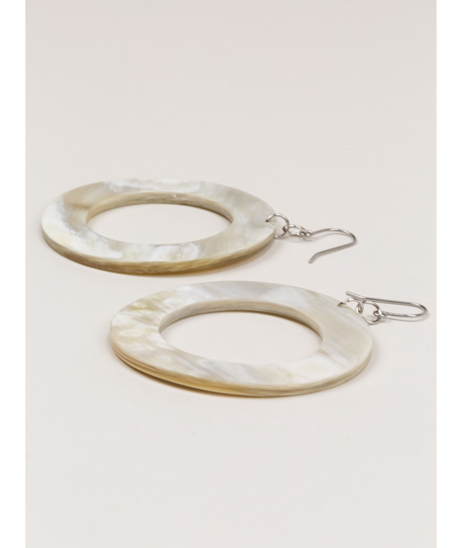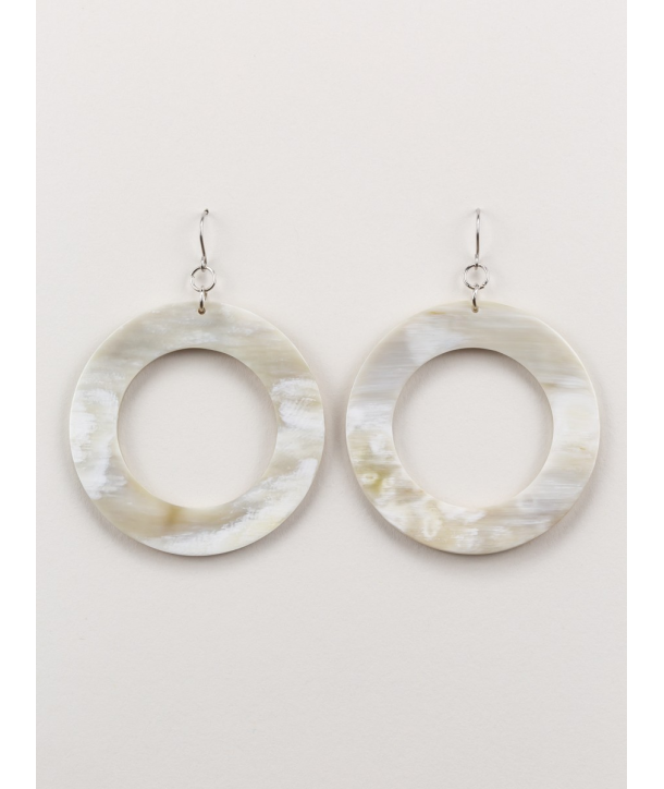 Boucles d'oreilles grand anneau plat en corne blonde et noire