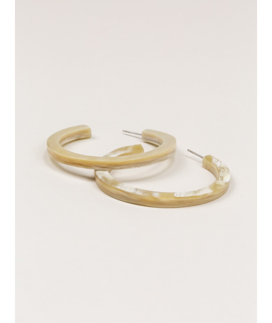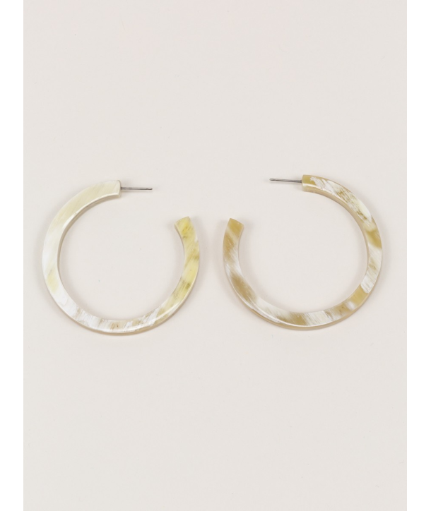 Boucle d'oreille grands anneaux ronds bords droits en corne blonde Africaine