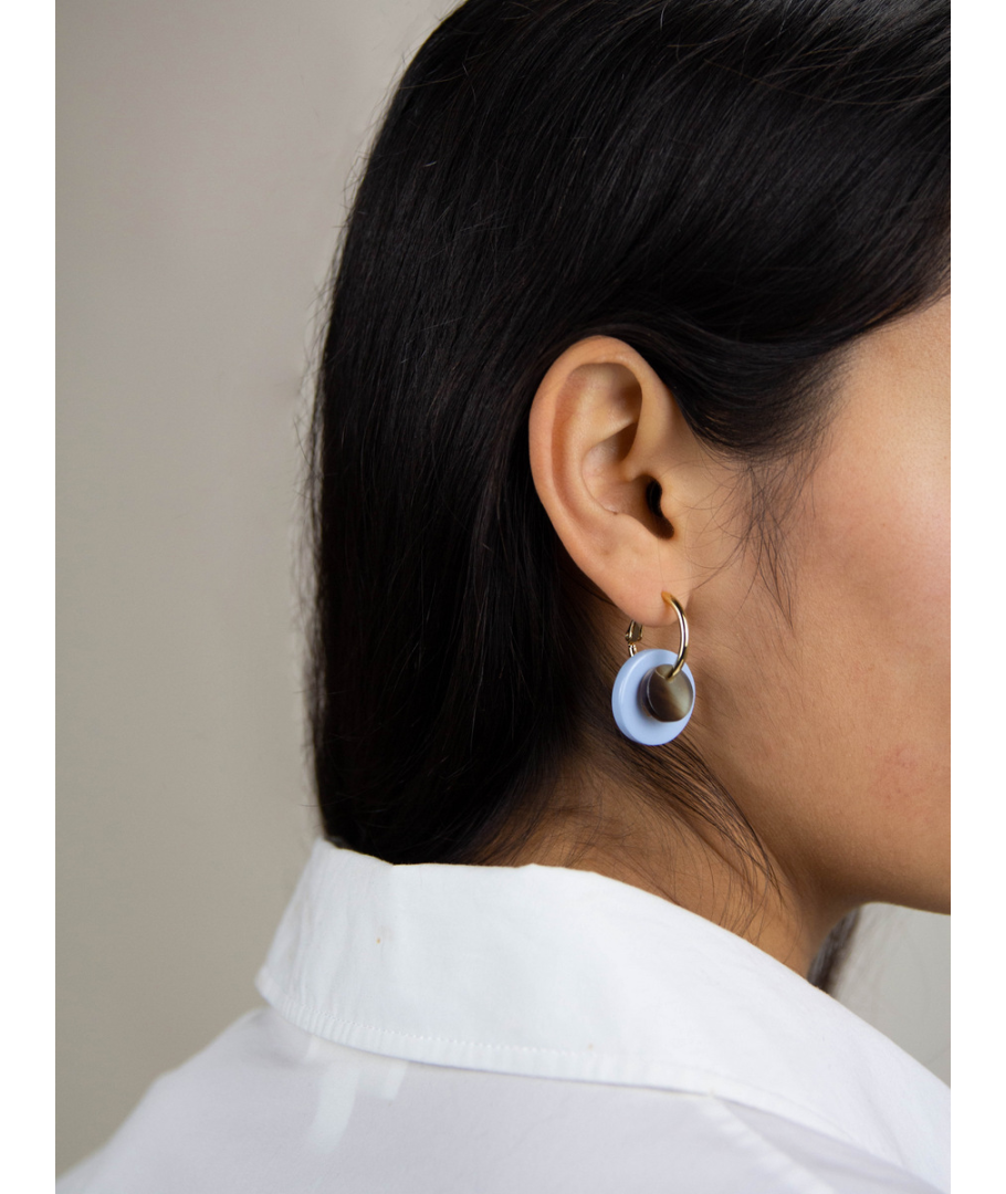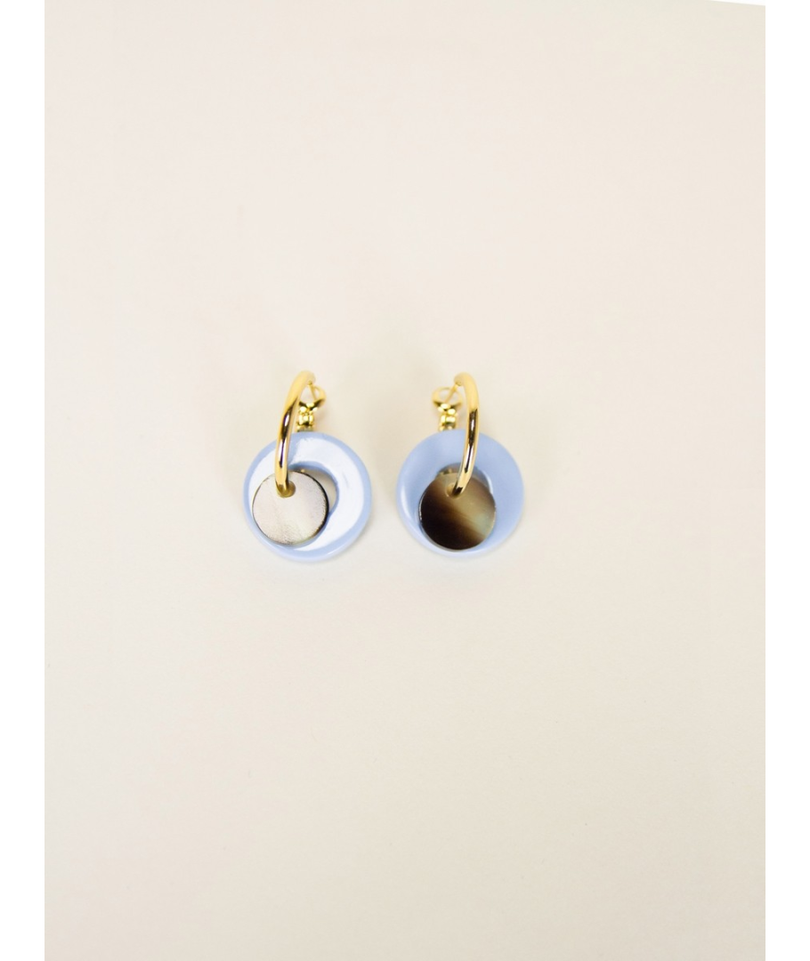 Boucles d'oreilles anneau laqué bleu et pastille sabot