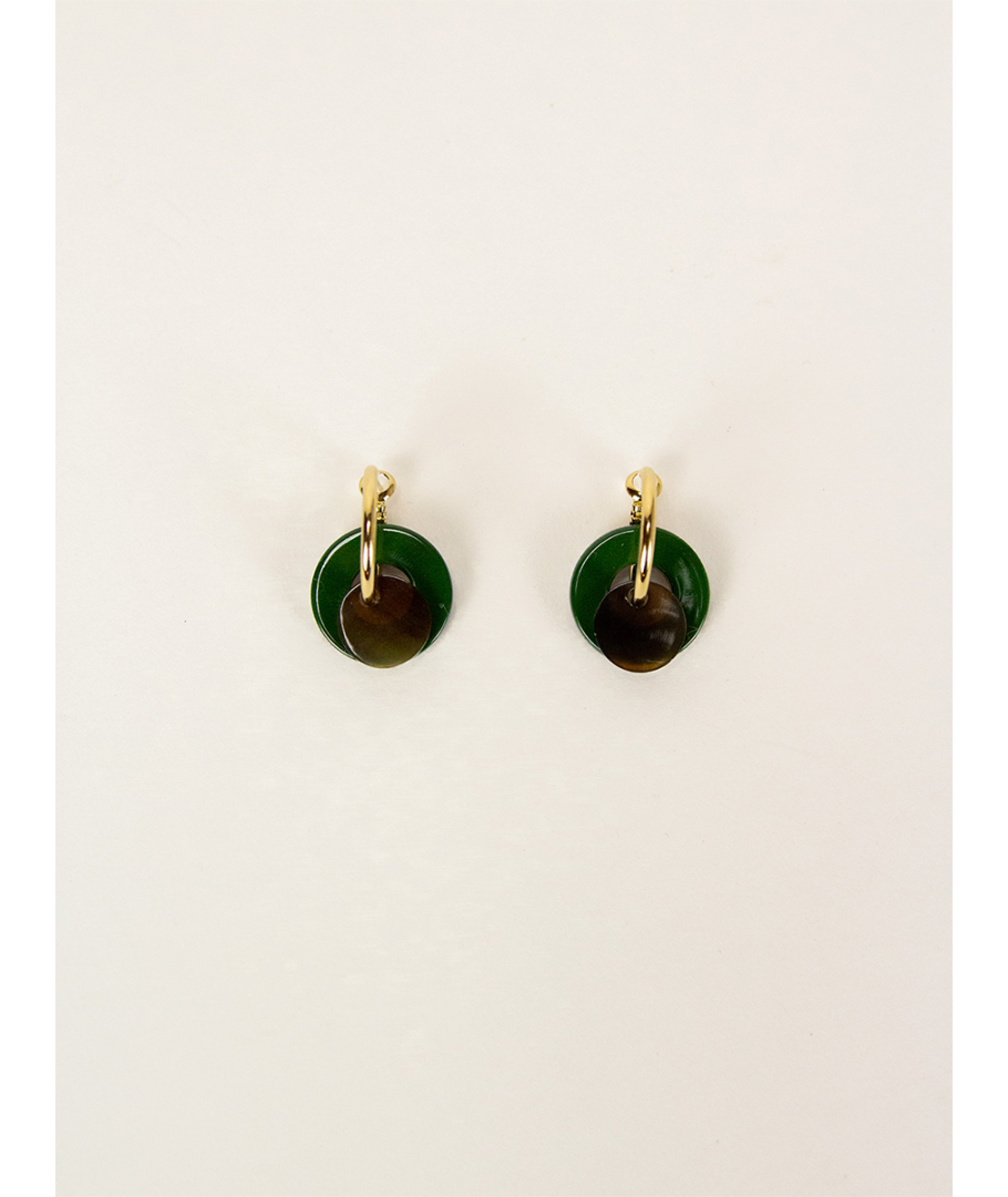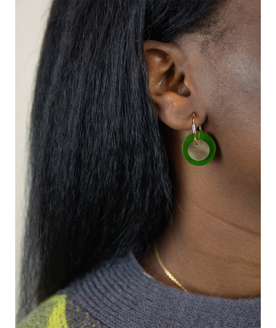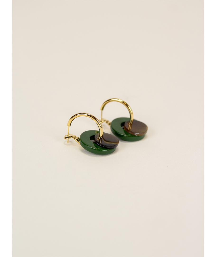 Boucles d'oreilles anneau laqué kaki et pastille sabot