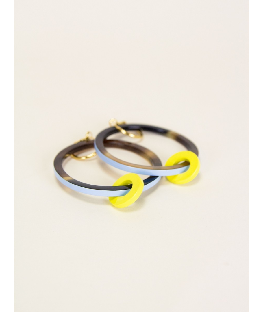 Boucles d'oreilles grand anneau et petit anneau laqués jaune bleu
