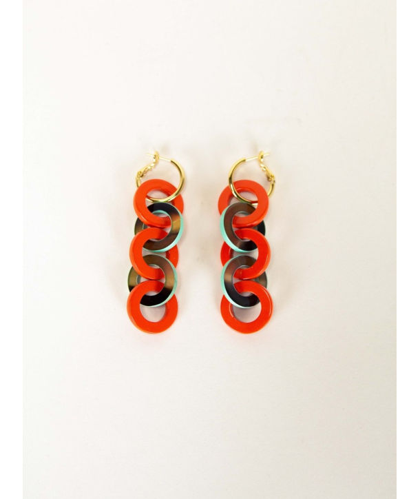 Boucles d'oreilles 5 anneaux laqués orange vert