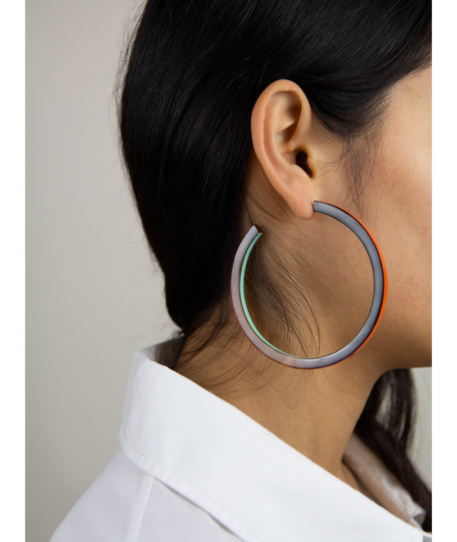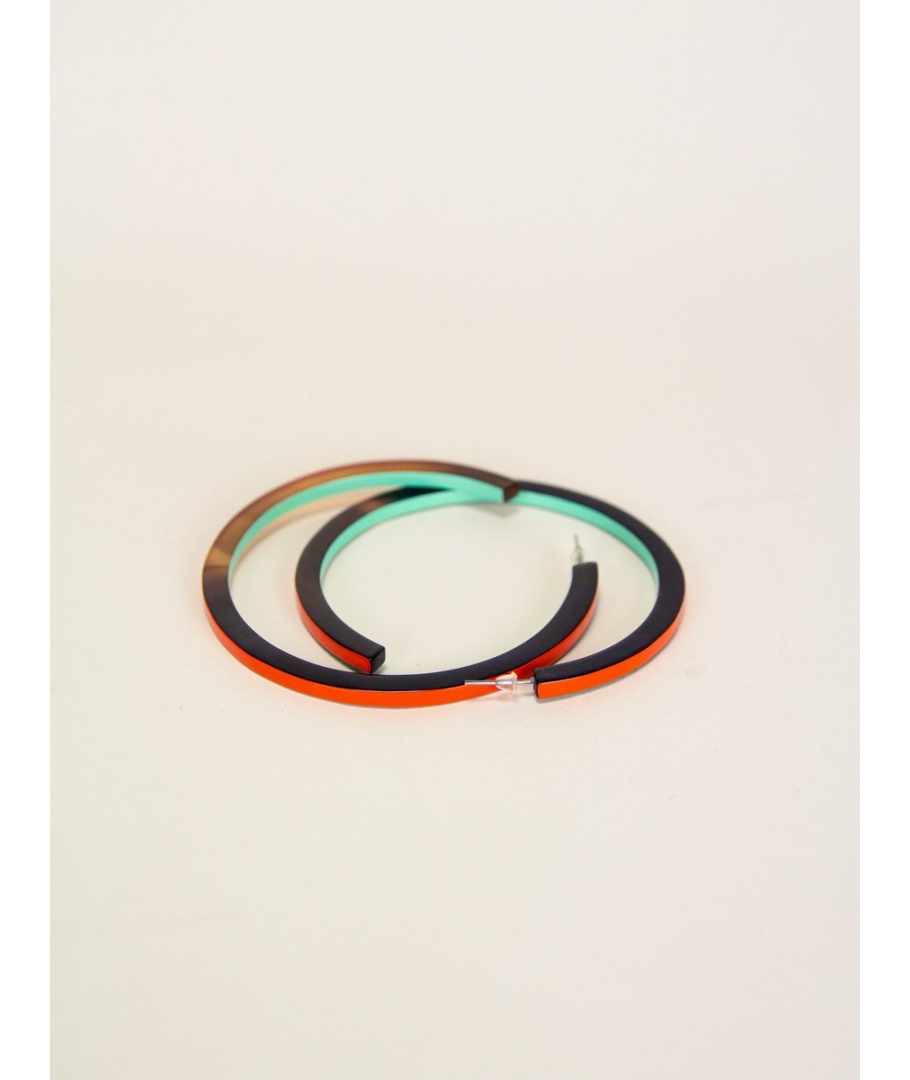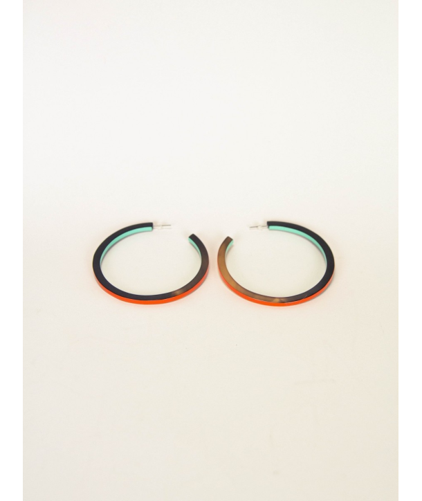 Boucles d'oreilles créoles grand anneau laqué orange vert et pastille sabot