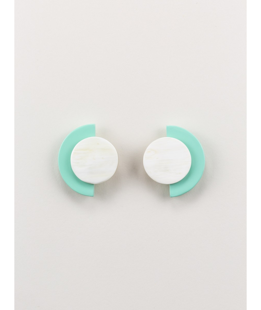 Boucles d'oreilles Terrasse en corne blonde et laque menthe