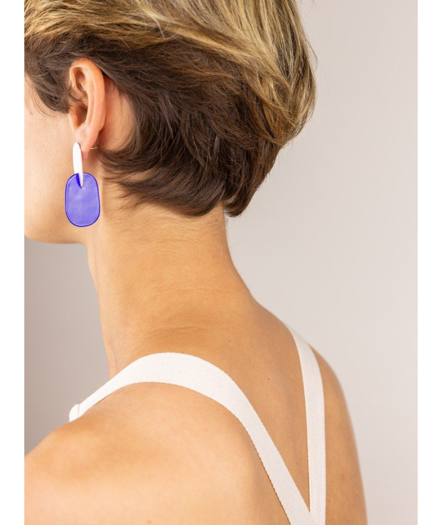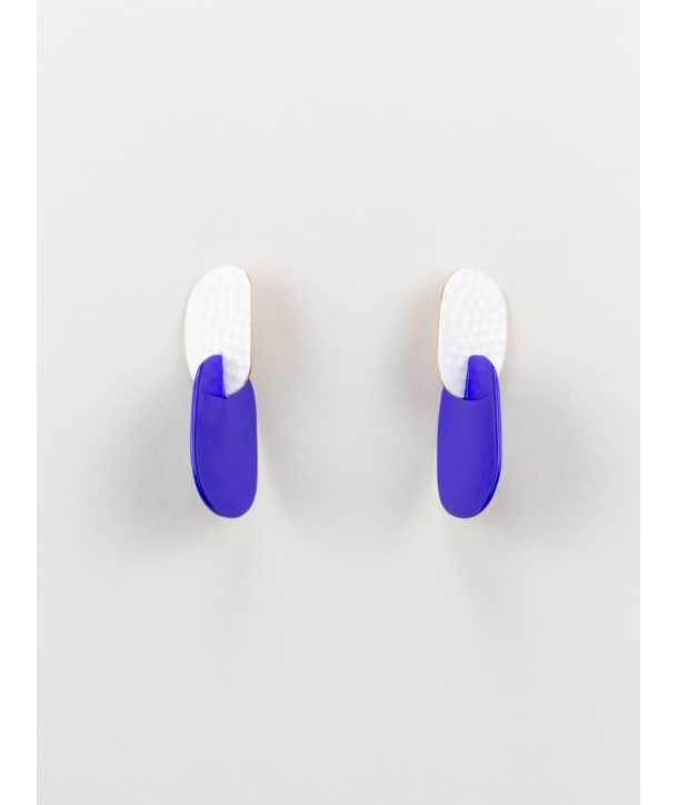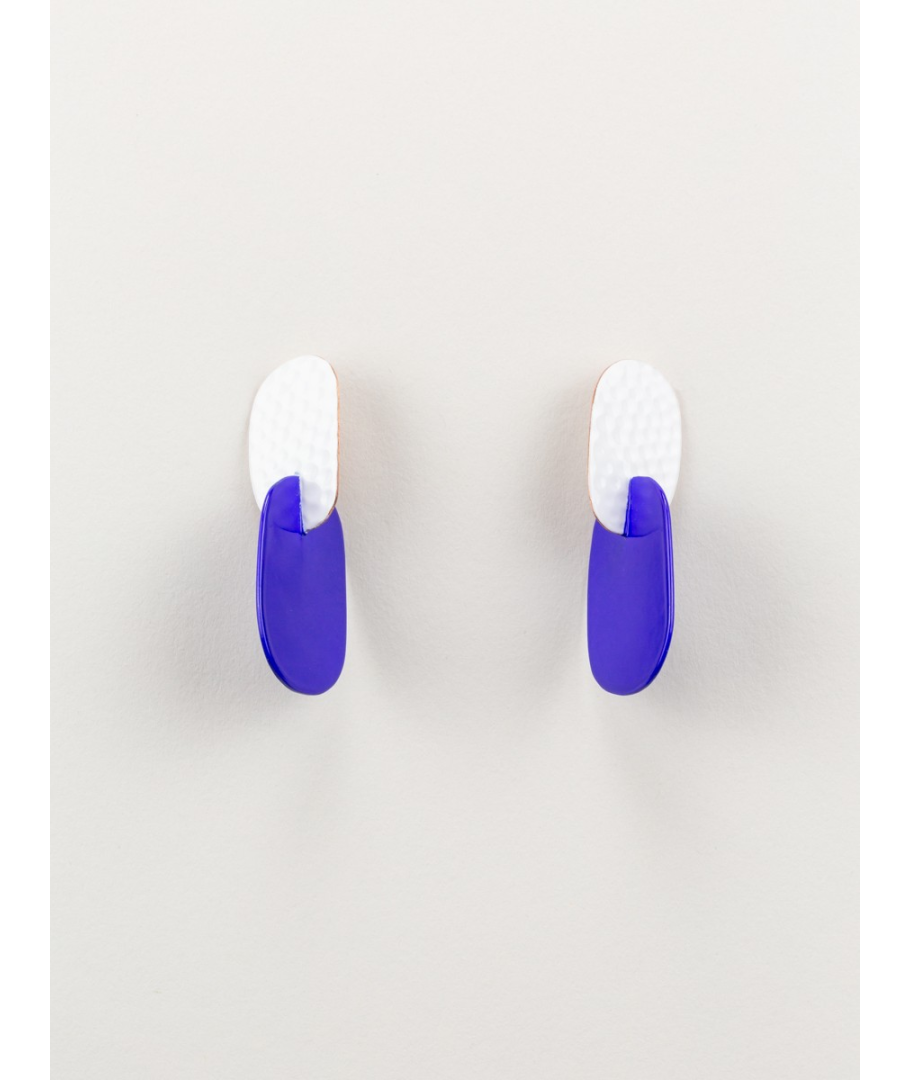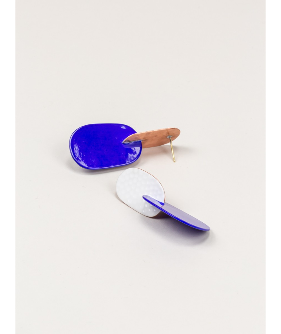 Boucles d'oreilles 2 feuilles en cuivre avec laque bleue et blanche