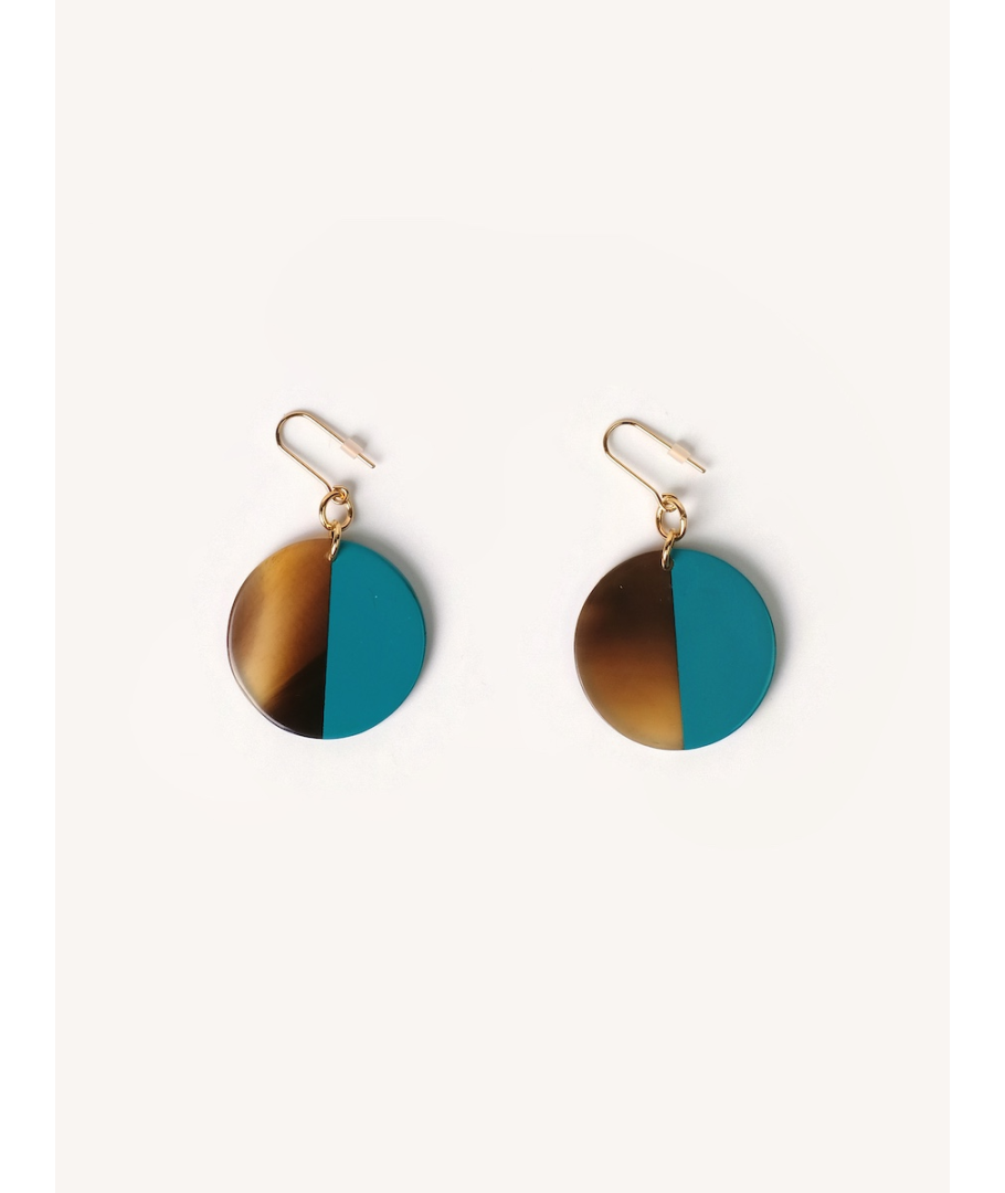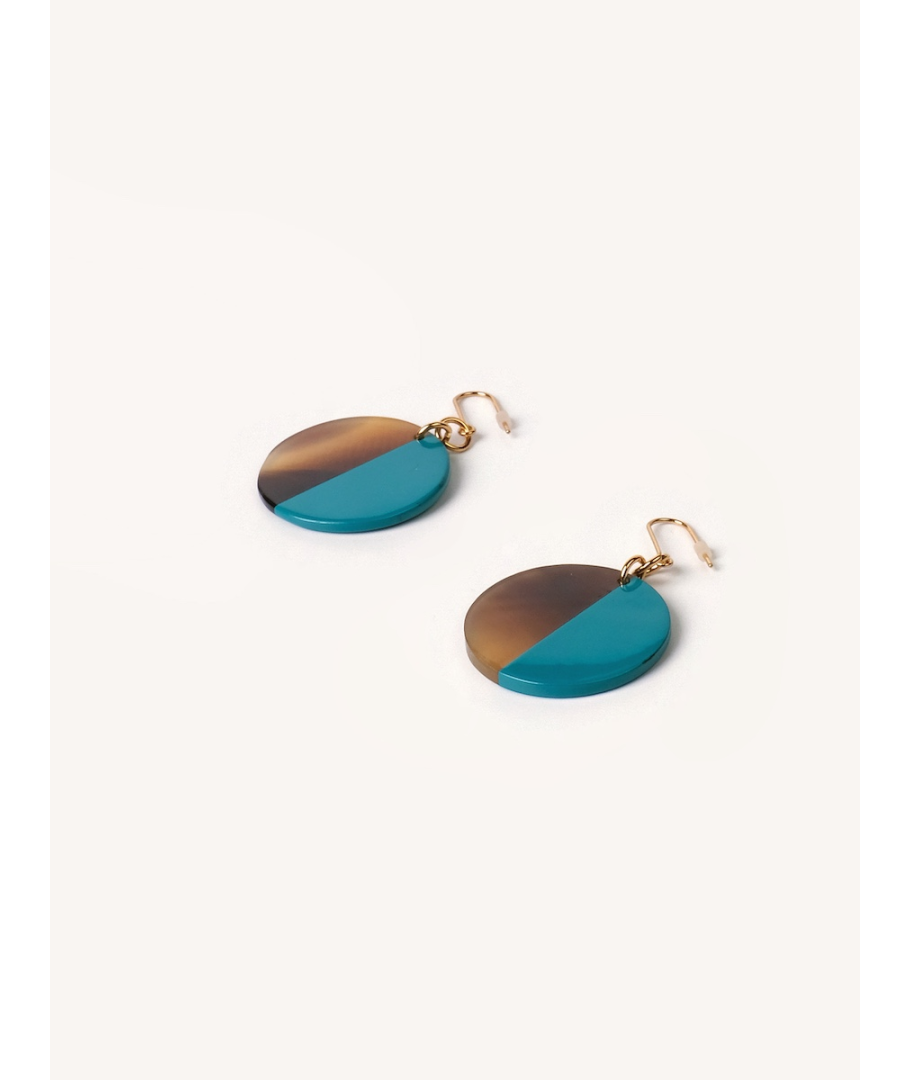 Boucles d'oreilles disque plein laqué bleu turquoise