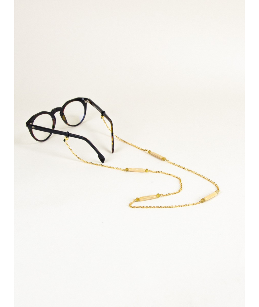 Capsule glasses chain in brass and blond horn