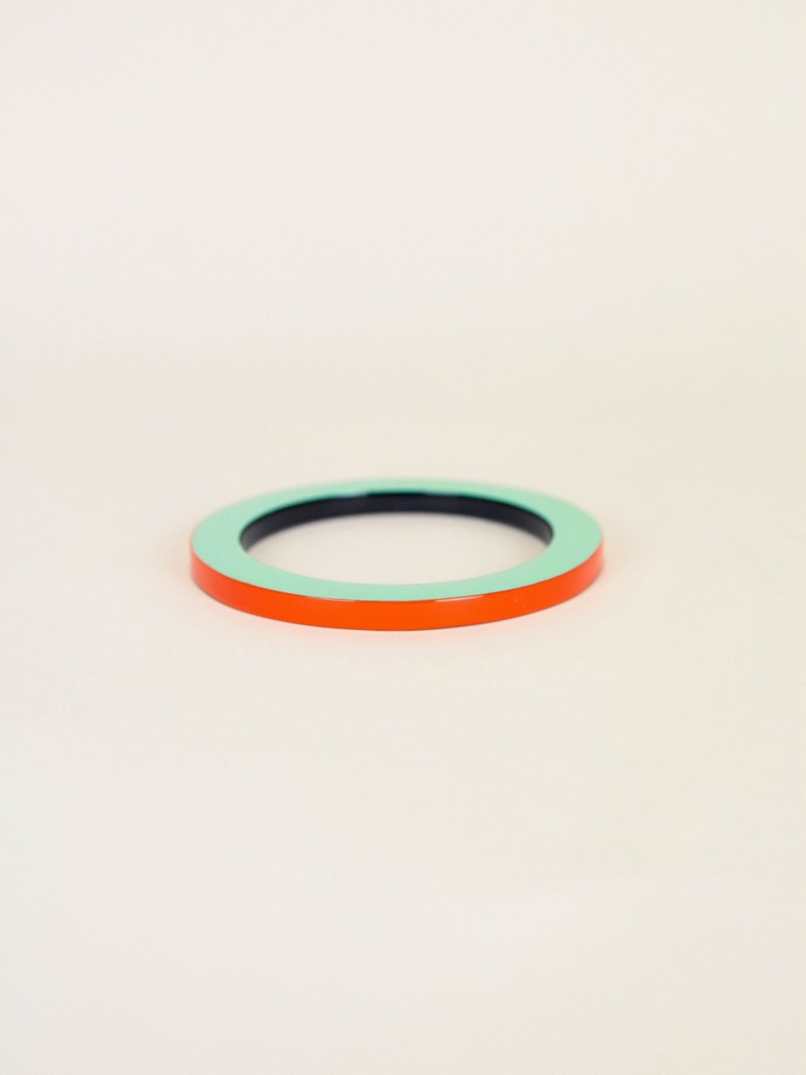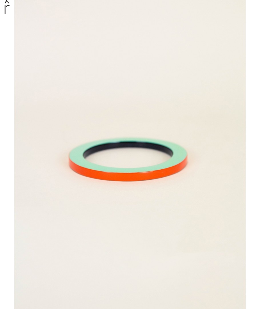 Bangle in horn with lacquer in orange and green