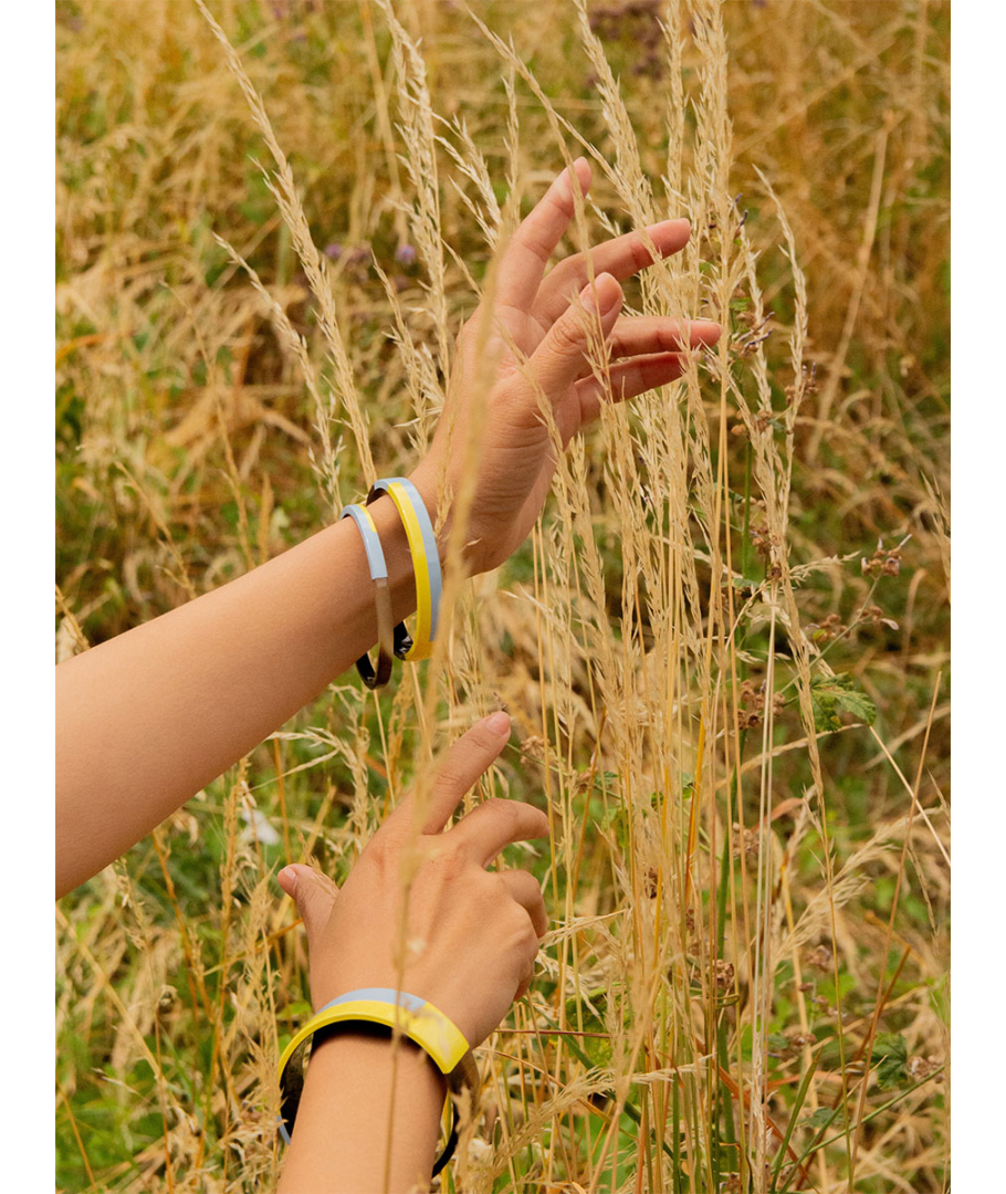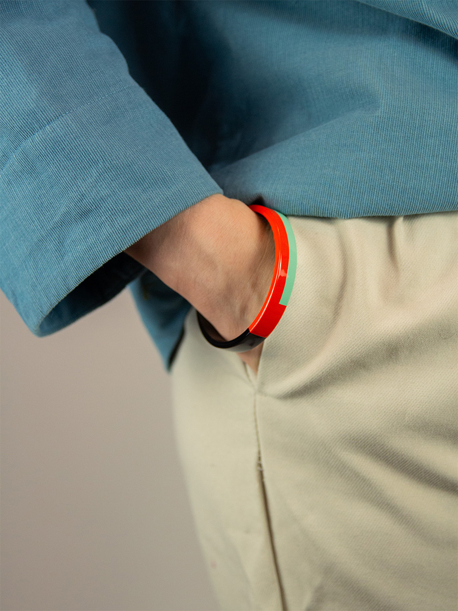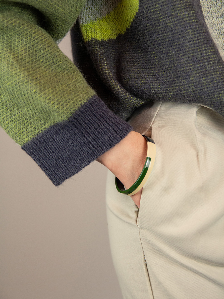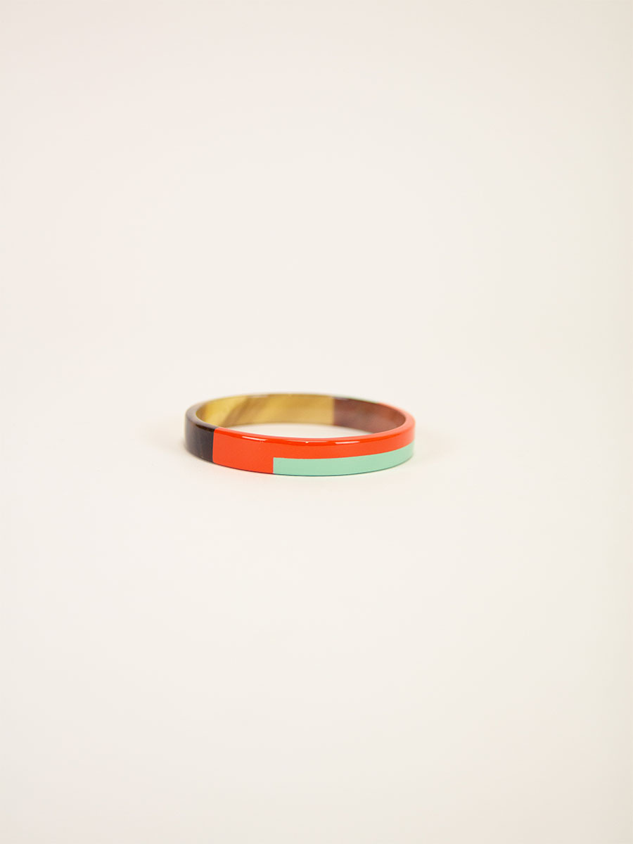 Thin bangle in hoof and yellow-blue lacquer, size L
