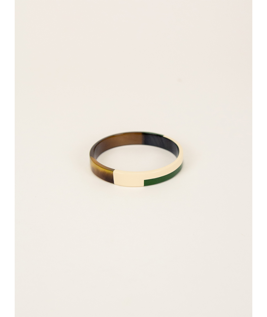 Bracelet jonc, laque bicolore beige et vert kaki taille L