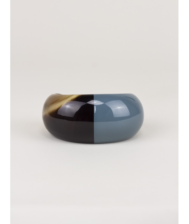Bracelet ouvert bombé et laqué bleu gris taille M