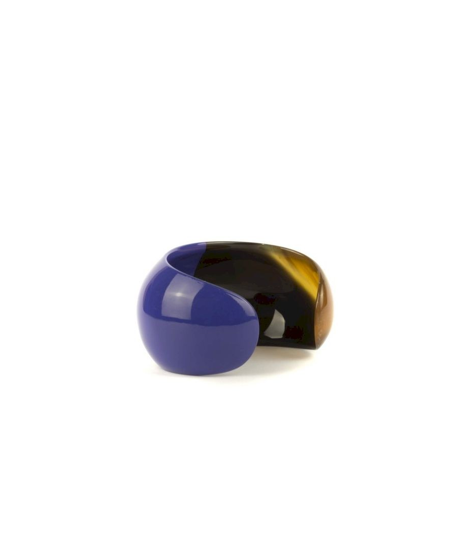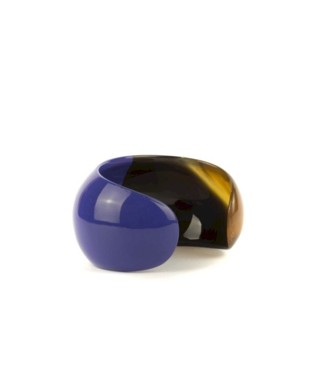 Bracelet ouvert bombé et laqué bleu indigo taille M