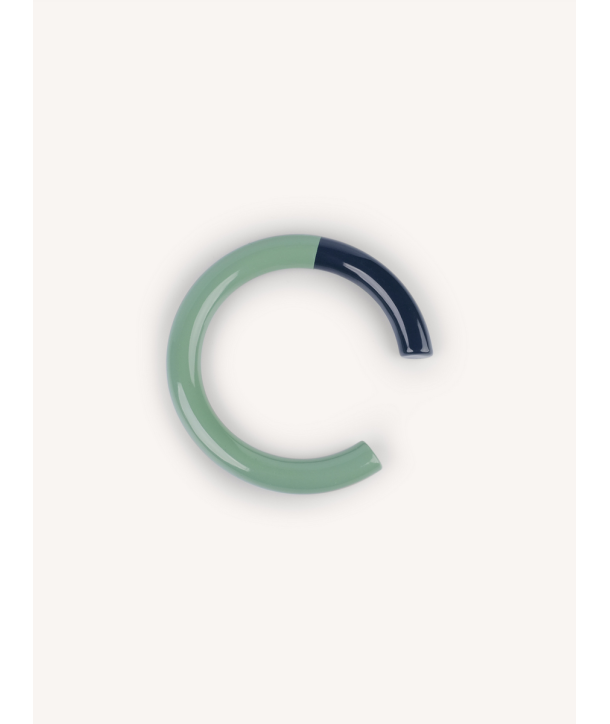 Manchette fine en bois et laque vert et gris taille M