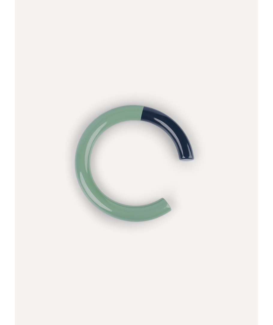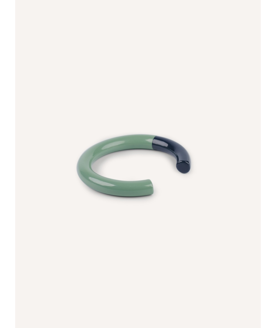Thin wooden cuff bracelet green and gray lacquer, size M