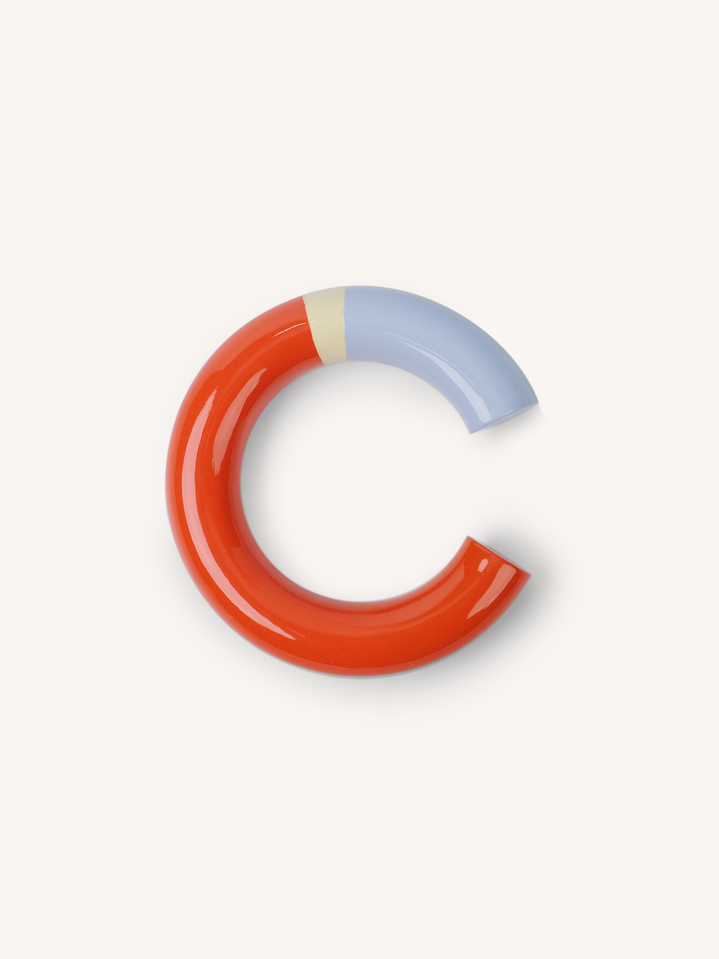 Thick wooden cuff bracelet, orange, light blue and sand lacquer, size L