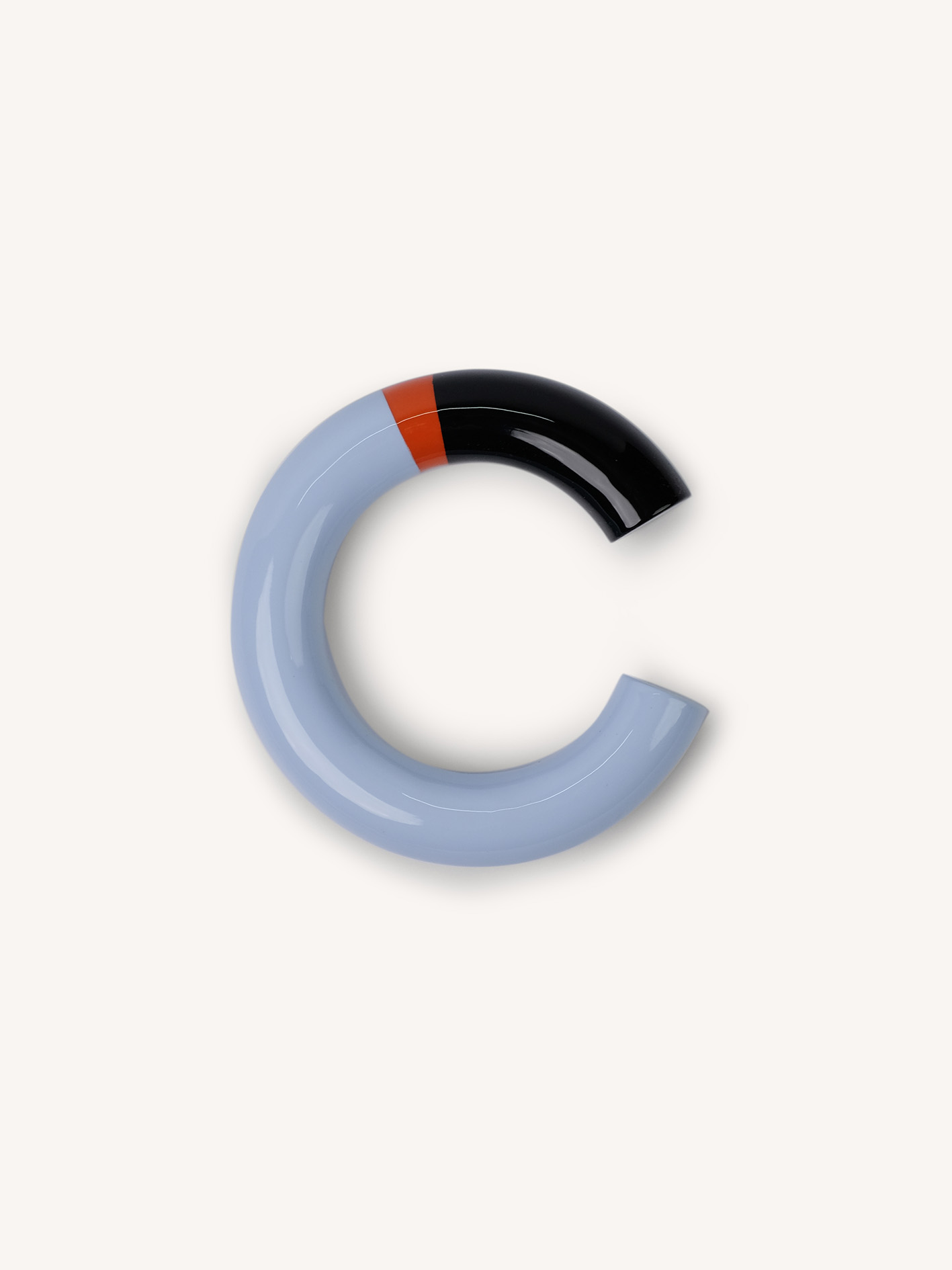 Thin wooden cuff bracelet, light blue, dark blue and orange lacquer, size L