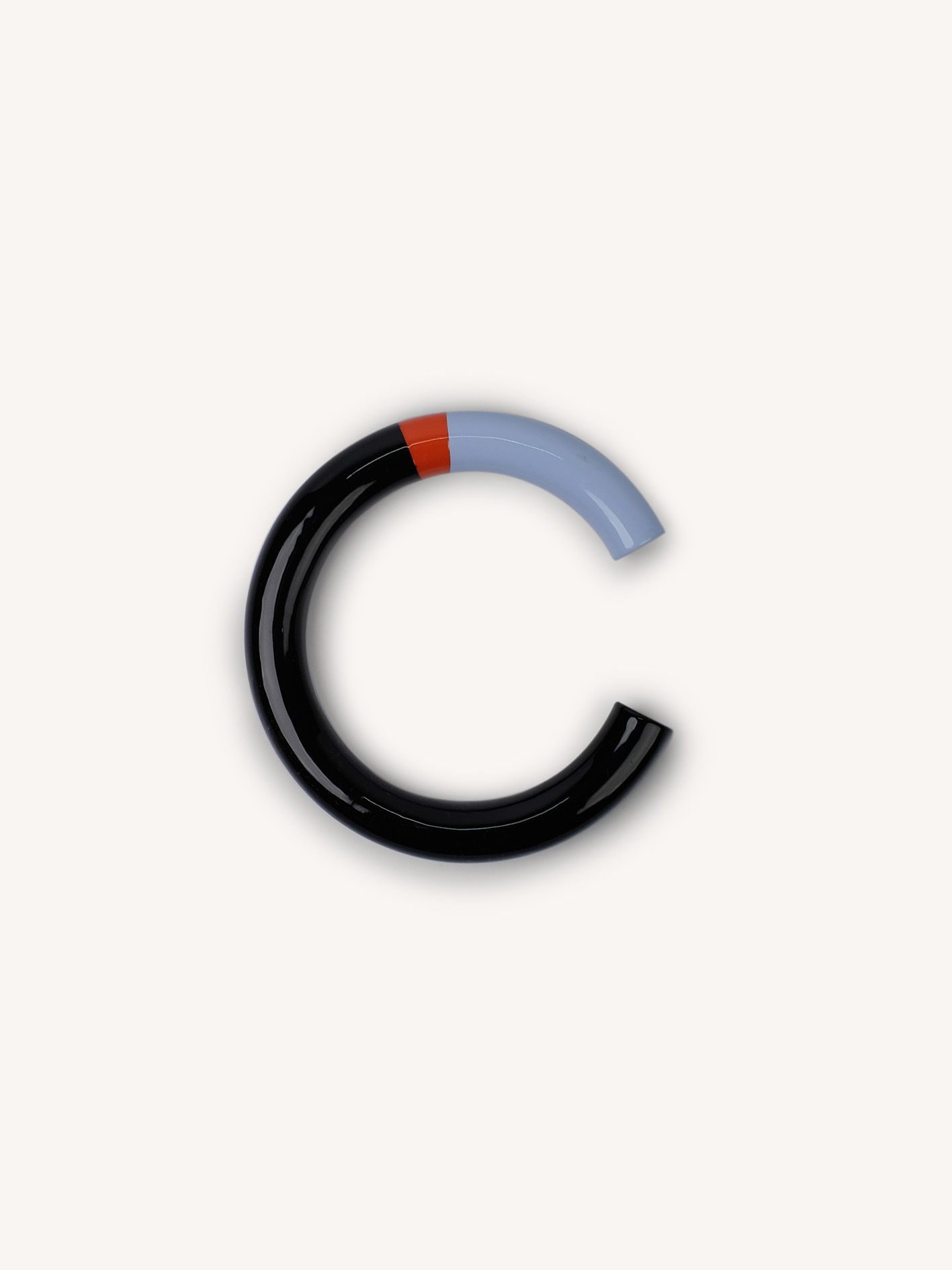 Thin wooden cuff bracelet, dark blue, light blue and orange lacquer, size L