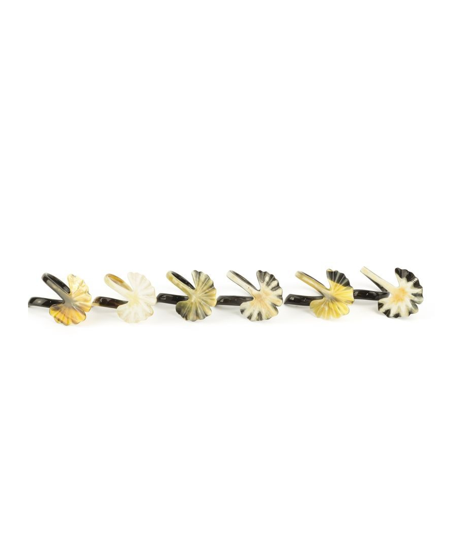 Set de 6 rond de serviette ginkgo en corne blonde