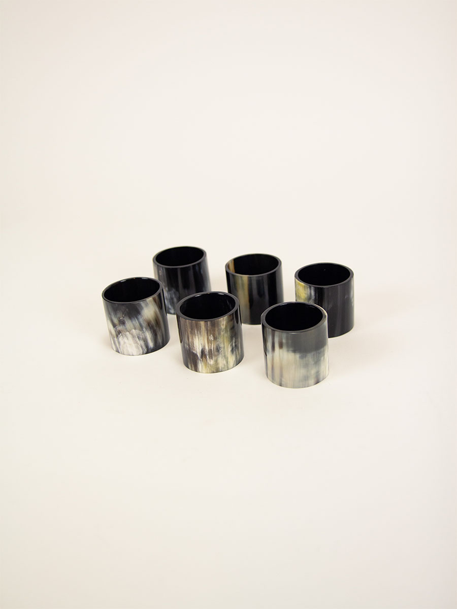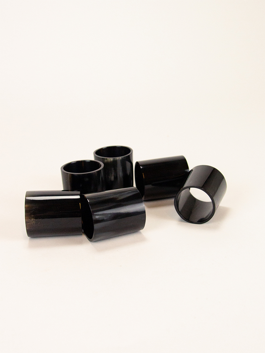 Set of 6 napkin rings in black horn