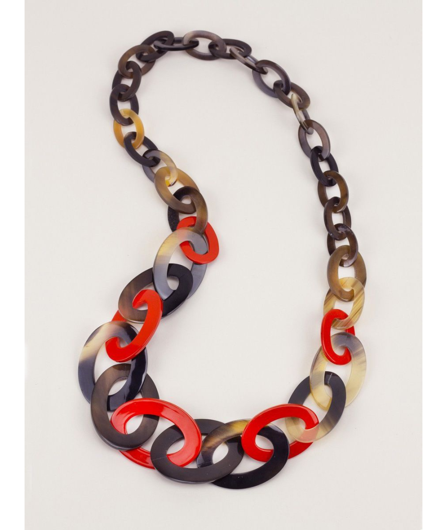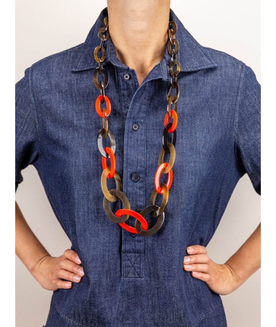 Sautoir anneaux plats ovales de 3 tailles laqué orange