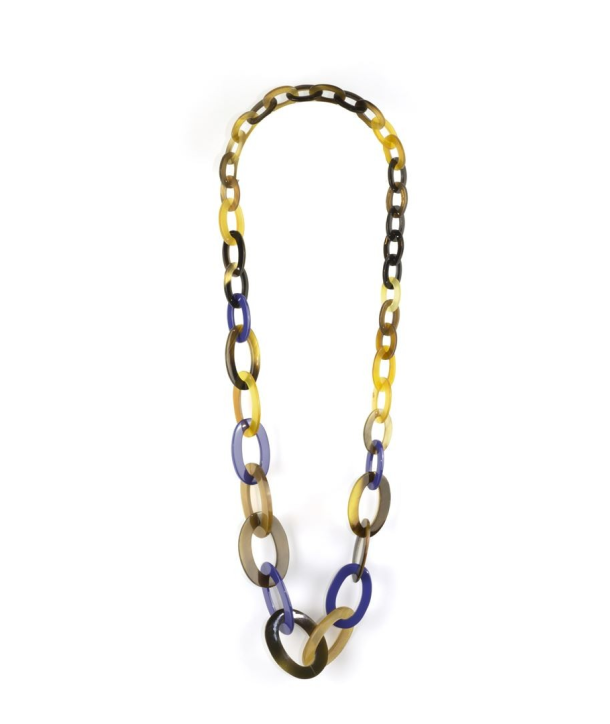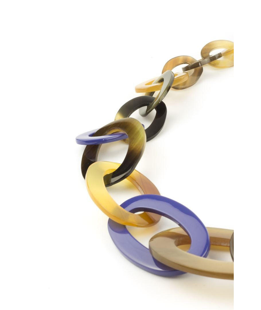 Sautoir anneaux plats ovales de 3 tailles laqué bleu indigo