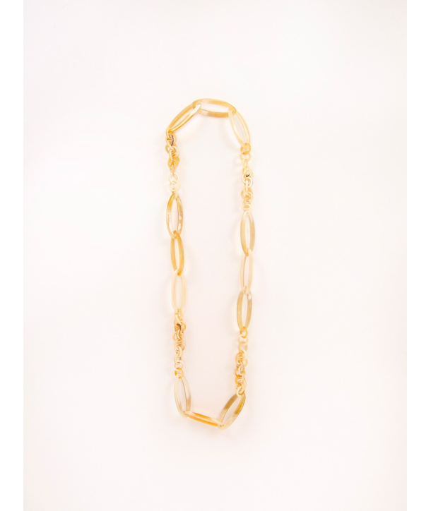 Sautoir anneaux fins ronds et ovales en corne blonde